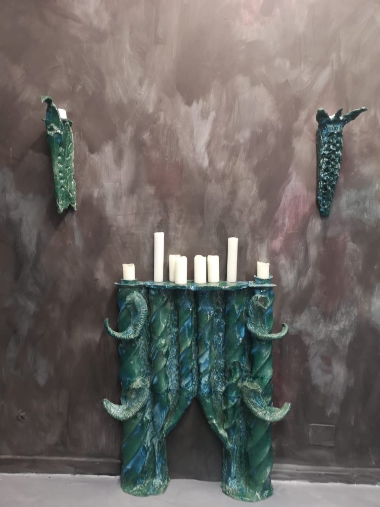 Le opere, sono liberamente ispirate alla letteratura cinquecentesca di Giordano Bruno e, nello specifico, allo Spaccio de la bestia trionfante (1584), testo allegorico di filosofia morale ed emblema della battaglia anticlericale condotta dal filosofo. I lavori in mostra offrono un'occasione preziosa per portare alla luce una serie di riferimenti letterari, filosofici e religiosi contenuti nell’ arte raffinata e suggestiva di Maggi. Il corpus esposto è presentato come un viaggio negli abissi all’interno di una natura enigmatica e contraddittoria, la cui anima occulta è riportata alla luce dal processo artistico. La materia dinamica e consistente delle sculture, i preziosismi ottenuti dalla luminosità delle ceramiche e dai riflessi dorati del ferro, i corpi esili che si materializzano in una pittura acquosa e leggera svelano i misteri di una realtà magicamente visualizzata da Maggi.