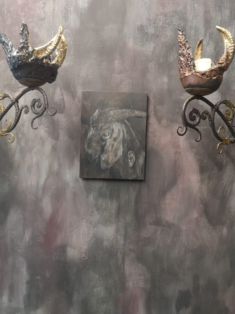 La natura come riflesso della potenza divina e l’eterna lotta tra le forze occulte che pervadono l’universo sembrano essere le tematiche cardine dell’installazione. Essa si sviluppa negli spazi come una sfilata di immagini sospese in una dimensione spazio-temporale remota e divenuta finalmente accessibile. Tra i temi affrontati nell’articolo vi è la ricerca di un filo conduttore tra l’artista, creatore di figure ibride, appassionato di mitologia ed esoterismo, e il rivoluzionario Giordano Bruno, capostipite degli “eretici” ed antagonista di una religione convenzionale e preimpostata: l’ambizione di una nuova spiritualità volta a riscoprire il divino come parte integrante del mondo, la ricerca di un dialogo intimo uomo-natura per ripristinare l’antico contatto con la dimensione sovrannaturale sono aspetti che affiorano nelle tele esposte. Ad esempio, l’allusione al Male, che astutamente si annida nel mondo, si cela nell’immagine di bestie cornute o si incarna nei corpi di lupi feroci. In altri casi l’artista mette in luce il vincolo fraterno uomo-animale.