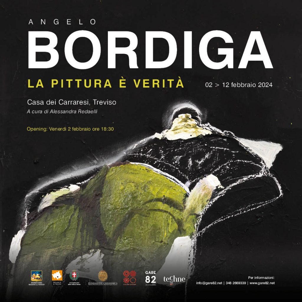 A partire dal 2 fino all’11 febbraio 2024, Casa dei Carraresi a Treviso ospita la mostra personale La pittura è verità dell’artista Angelo Bordiga, a cura di Alessandra Redaelli e organizzata da Techne Art Service. Il progetto è stato promosso da Gare82 Gallery