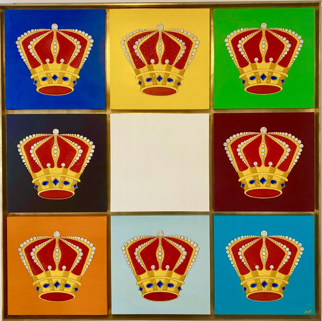 Le composizione sono chiamate da Amanda in modo abbastanza vivido “Lo Splendore del Potere” e “L’Autunno del Potere”. Entrambi i dipinti sono composti ponendo le corone al centro dell'attenzione e l'artista, con la sua intuizione nella relazione tra significati opposti, usa i colori – bianco e nero – in un modo molto specifico che torna a indulgere nell’osservazione della circolarità che anima l’universo. Perfetta equazione che avvalora la teoria del tutto.