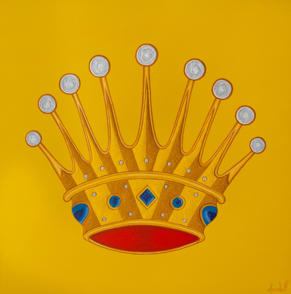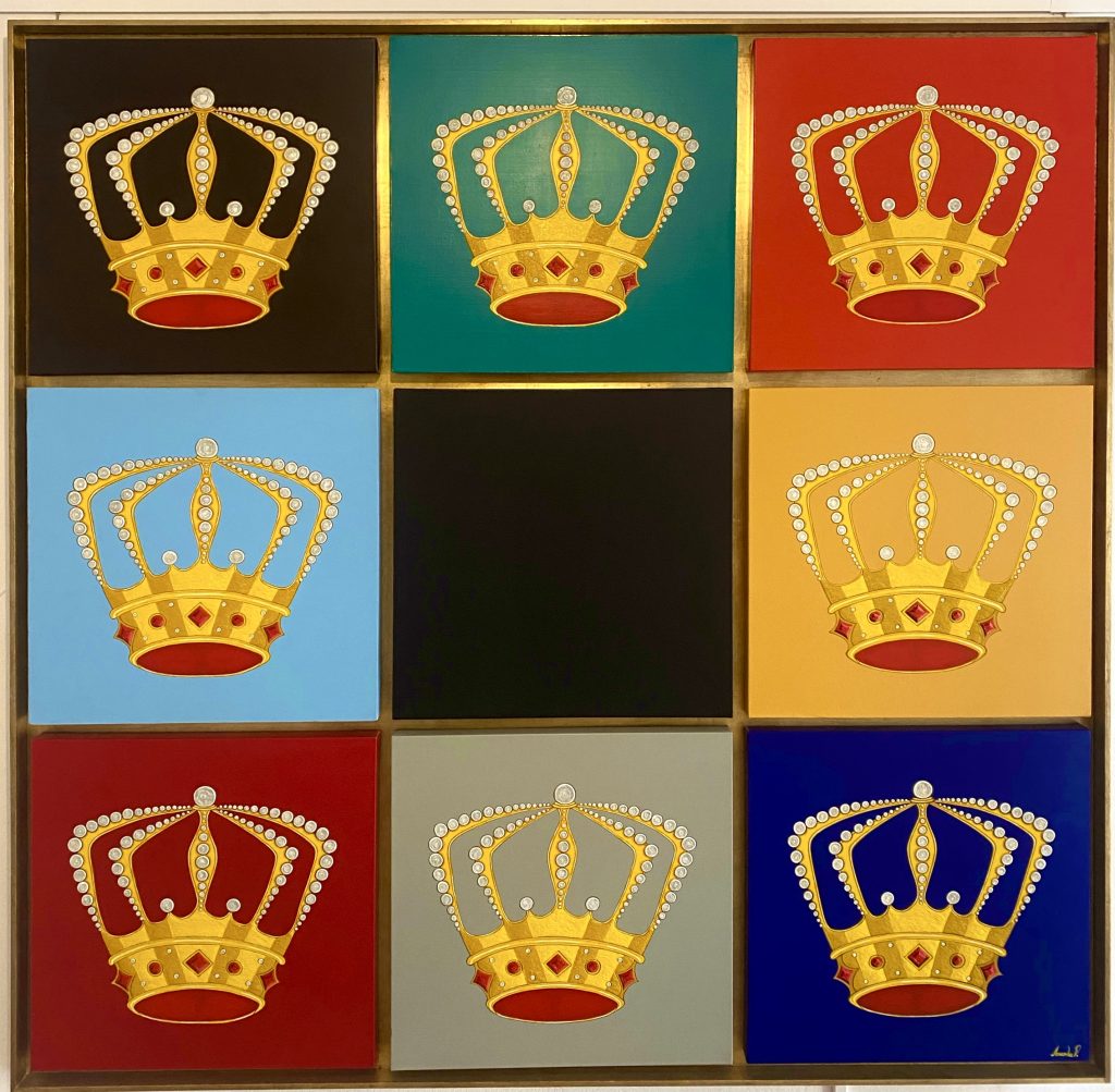 Le composizione sono chiamate da Amanda in modo abbastanza vivido “Lo Splendore del Potere” e “L’Autunno del Potere”. Entrambi i dipinti sono composti ponendo le corone al centro dell'attenzione e l'artista, con la sua intuizione nella relazione tra significati opposti, usa i colori – bianco e nero – in un modo molto specifico che torna a indulgere nell’osservazione della circolarità che anima l’universo. Perfetta equazione che avvalora la teoria del tutto.