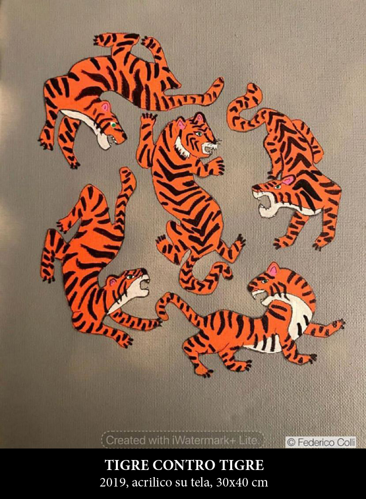 La Dott.ssa Elena Gollini nell'evidenziare la simbolica connessione con la siepe leopardiana e la produzione pittorica realizzata da Federico Colli ha voluto rimarcare: “Dimensione e misura, ma di altissima quota, con il limite immaginifico della siepe leopardiana di antica memoria e come il limite delle vette delle montagne tanto amate e ammirate da Federico, montagne dove si sente perfettamente a suo agio, perfettamente inserito nel suo habitat ideale, nel suo mondo magico. La leopardiana memoria consentiva di avvertire e concepire l'infinito nella sua speciale affascinante e intrigante connotazione unica non oltre e non soltanto oltre se stessa, ma oltre quell'ultimo orizzonte del quale impediva e fermava la vista. I limiti leopardiani declarati nei sublimi versi poetici, reali o immaginari, vengono ripresi da Federico nel tentativo di superarli e valicarli di restituire quel senso di purezza incontaminata alla pittura, proprio come incontaminate e pure sono le sue adorate montagne. La dimensione e la misura diventano di conseguenza in parallelo il limite ultimo ed estremo di una simbolica siepe leopardiana, oltre e al di là della quale è possibile immaginare altri spazi, altre vedute, altre prospettive recettive e sensoriali, che Federico si prefigge di raggiungere come traguardo supremo della sua mirabile ricerca. Quell'oltre che Federico vuole puoi condividere appieno con lo spettatore, all'insegna di un'arte che unisce e genera comunione proprio come lo sport. All'interno della sua poliedrica e versatile idea creativa convergono in perfetta texture ad intreccio figure, ruoli, tempi, che convogliano insieme a formare e comporre il costrutto sintattico in modo sempre appropriato e congeniale, seguendo delle traiettorie che si sviluppano in modo continuo e si evolvono in fieri e in costante divenire, dove il movimento plastico accentuato è sinonimo di rinnovamento e di rigenerazione, di trasformazione graduale e progressiva che interviene entro e oltre scavalcando il concettualismo saturo e massificato e i clichés standardizzati e concedendo delle preziose opportunità di riflessione attenta e sensibile, che Federico compie in primis con ravveduta consapevolezza e poi offre al fruitore, affinché a sua volta imprima la propria personale e soggettiva valutazione interpretativa. Le chiavi di lettura sono sempre molto attuali e convincenti, argute e acute, senza seguire un certo tipo di disegno fatto con criterio storico o storicizzato in senso stretto e in senso lato, ma cercando invece di procedere oltre. Le opere vanno ammirate con l'emozione del cuore e la vibrazione del moto dell'anima, in uno stato quasi estatico sospeso in bilico tra realtà e invenzione”.