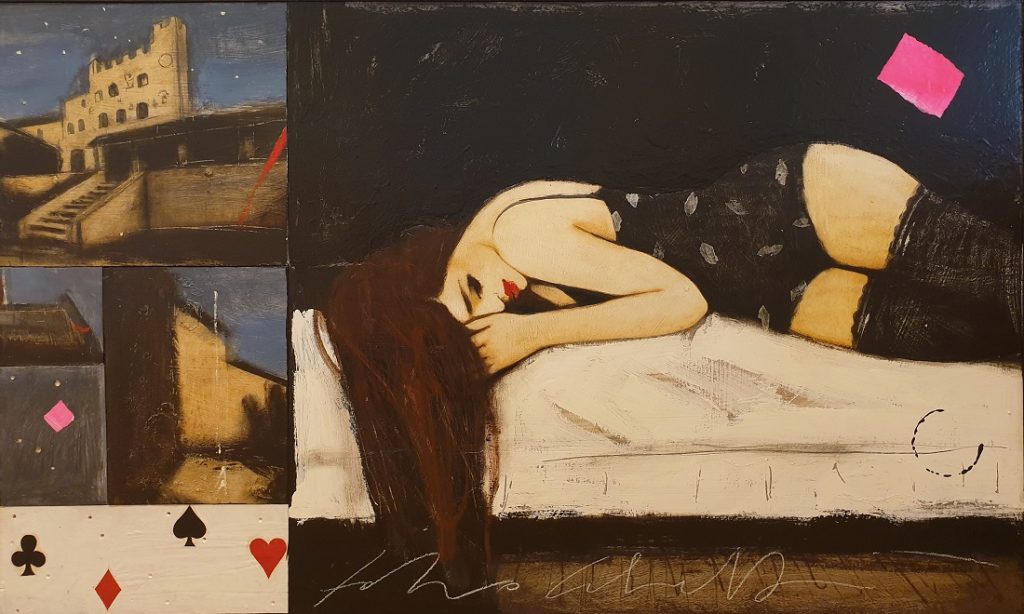 Spesso è protagonista una donna sola, elegante, spesso sensuale calata in interni di case o bar sospesi nel tempo e nello spazio, altre volte protagonista è l’ambiente stesso, uno scorcio d’interno o di città notturna. In un contesto di atemporalità quasi teatrale e senza luce naturale, le donne sembrano in ascolto di sé stesse, in attesa che qualcosa accada o che una qualche risposta arrivi.