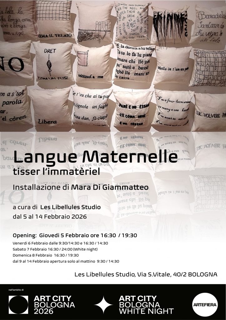 L'artista attraverso un operazione di tessitura e ricamo indaga il concetto di memoria e scrittura, in questo caso nella lingua madre, come parte fondamentale delle radici e dell’identità di una persona e patrimonio culturale intrecciato con l'intera umanità. L’artista indaga con l’annotazione e l’azione lenta del ricamo della parola sulla tela, il rapporto etimologico e fonetico del suono e dei vari significati che nel tempo creano quelle parole all’interno di stratificazioni linguistiche e di contaminazioni di vita tra diversi popoli e culture, per questo la mostra prende forma come una grande scatola del suono o del silenzio, in cui del silenzio, richiamando le sale di registrazione musicali ovattate che in questo caso sono di cuscini con scrittura da leggere, nel linguaggio verbale e tessile.