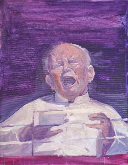 Senza parole 1 , olio su canvas del 2023, 70x90, di Fabrizio Vatta che coglie Papa