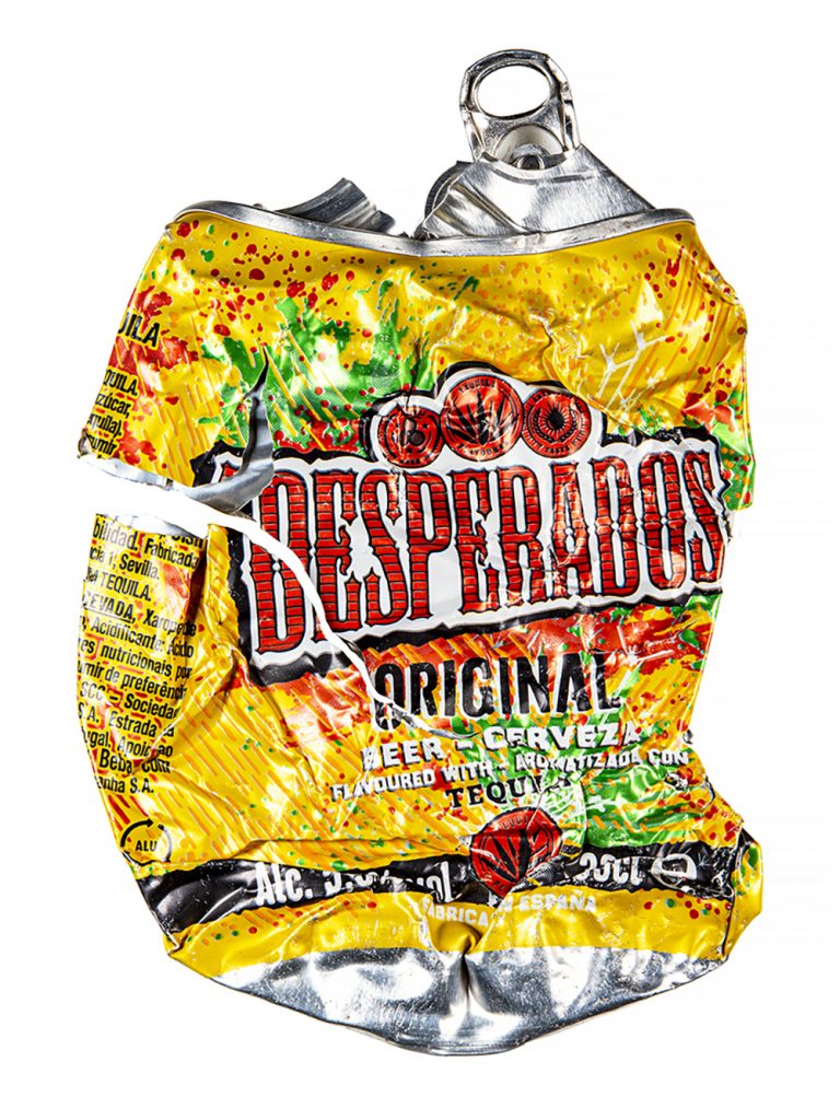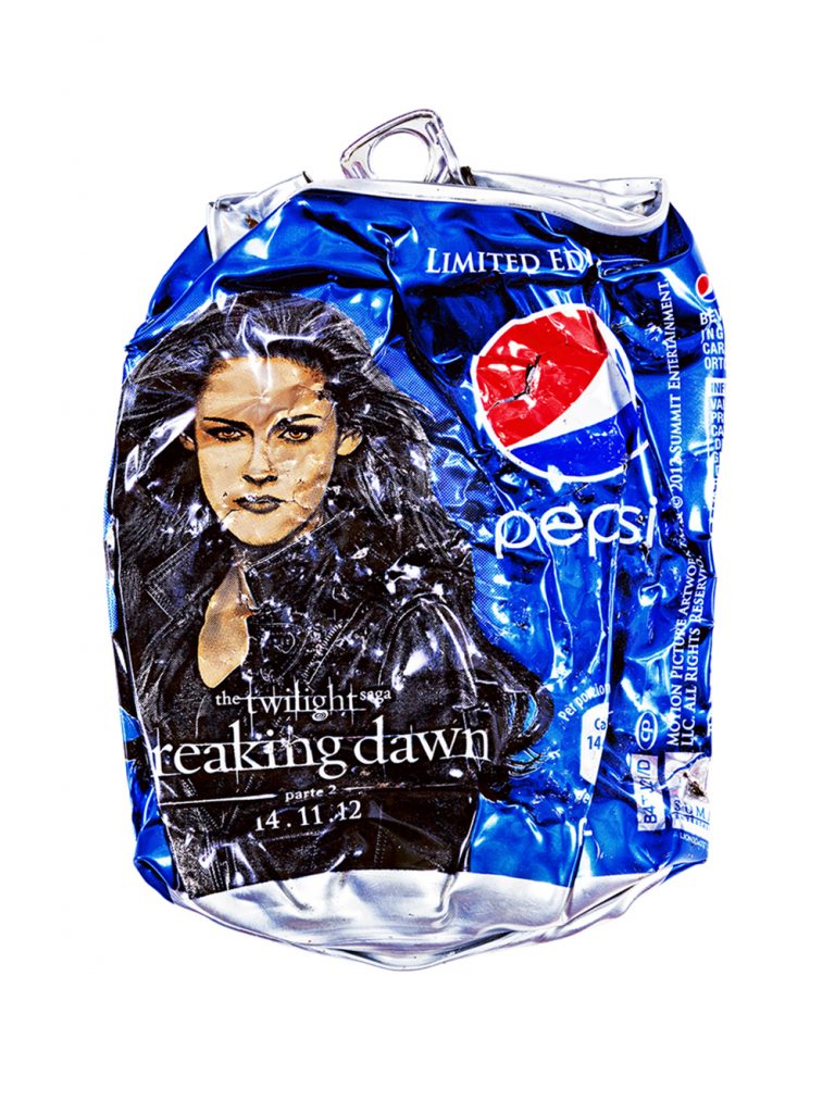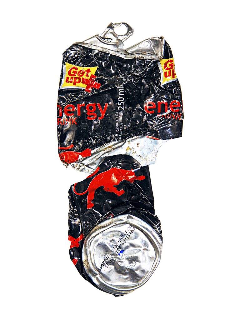 Questo progetto fotografico, al di là degli immediati richiami alla Pop Art, focalizza l’attenzione sull’utilizzo di materiali di scarto, in questo caso barattoli di bevande schiacciati dalle auto, cui si può dare un nuovo valore, una nuova vita, riqualificandoli con un intervento creativo che ne sovverte la storia passata.