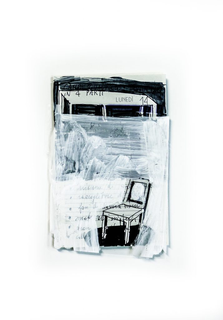 Il suo lavoro è in progress, in continua evoluzione e costruzione, i suoi “cantieri”, che sembrano dei tavoli rovesciati, danno proprio questo senso di precarietà, di evoluzione e di trasformazione, di passaggio.