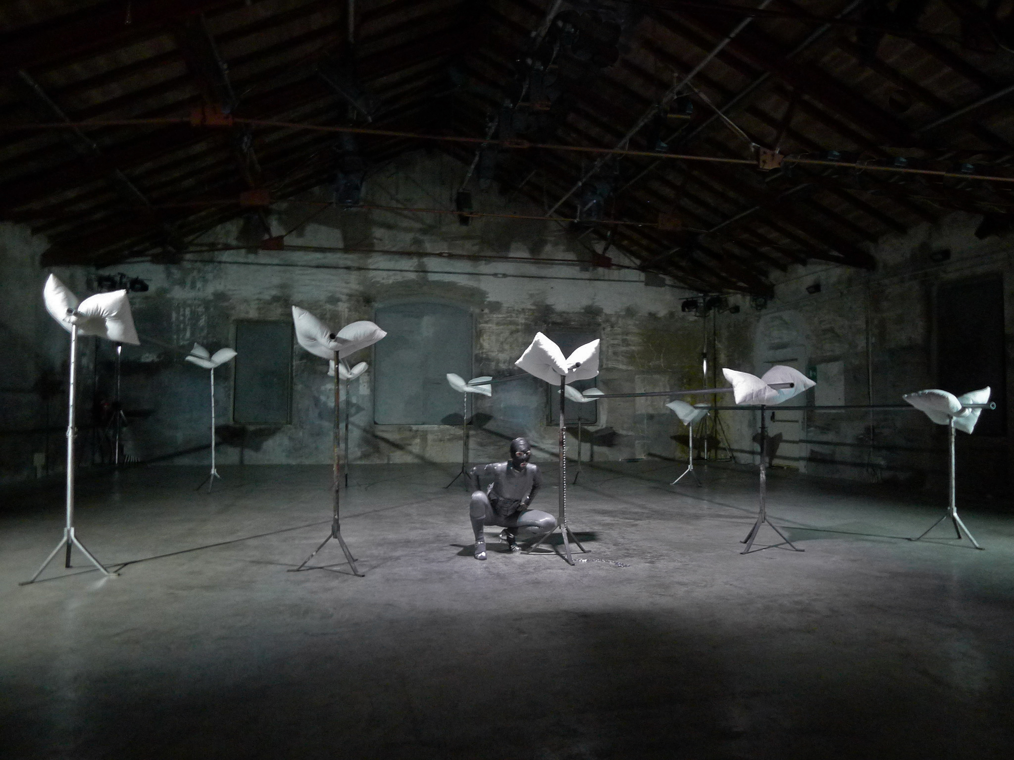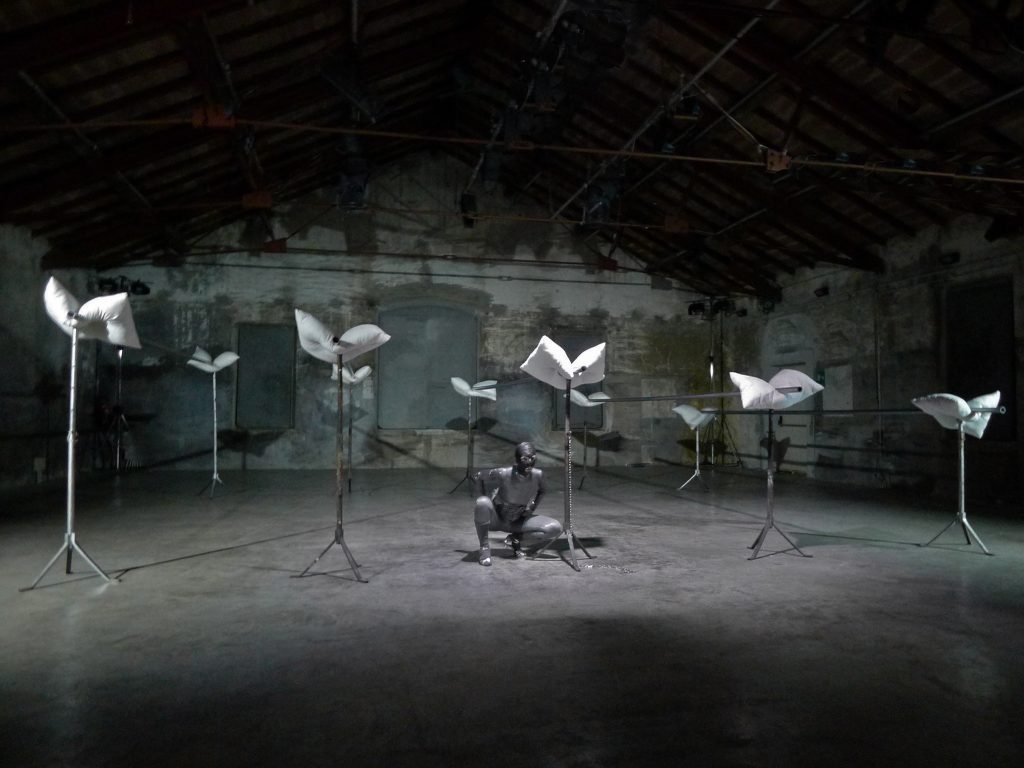 «Hipógrifo violento è nudo: non ha bisogno di apparati scenografici decorativi o di artifici tecnologici, ma si ostende in un’installazione strutturata in anonimi segmenti materici in ferro, che deformano e feriscono il ventre tenero di guanciali dalla mollezza biancastra e lardosa» spiega Maria Federica Maestri in merito alla creazione interpretata da Sandra Soncini al debutto a Lenz Teatro il 24 e 25 settembre alle ore 21.45 e il 26 settembre alle ore 19.45 «Con Sandra prevale una visione immediatamente fisica del lavoro, poiché il suo percorso artistico proviene dalla danza, ma si tramuta quasi improvvisamente, per una specie di miracolo estetico, in forte tensione verbale».
