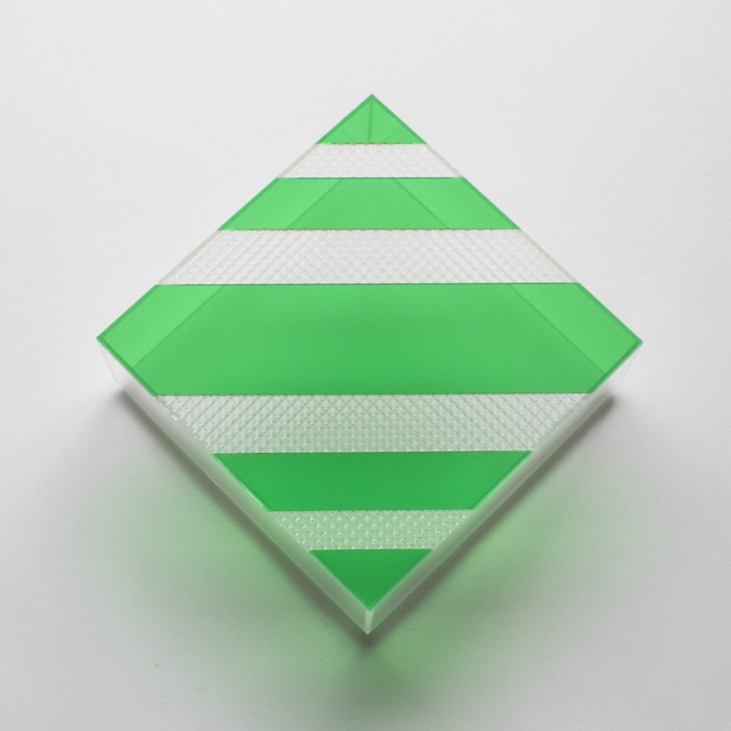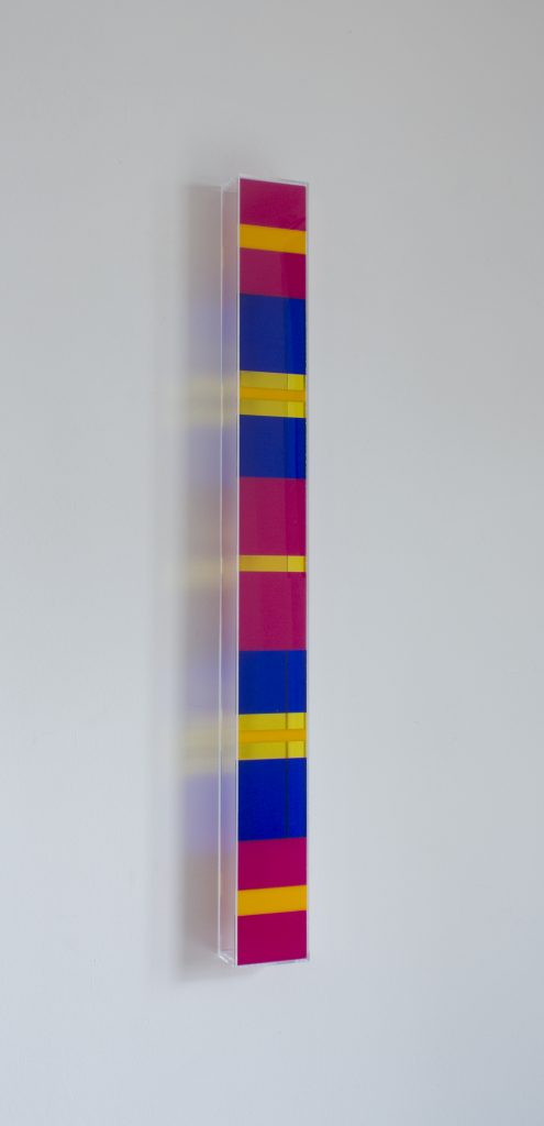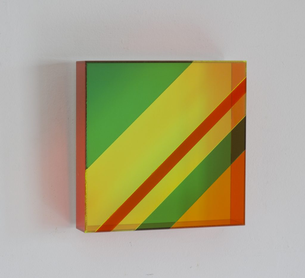 La scoperta delle proprietà espressive del plexiglass gli ha consentito una particolare interpretazione dell'astrazione geometrica attraverso l'ideazione di una macchina ottico-proiettiva che utilizza la luce come una materia plasmabile e come parte integrante della stessa opera.