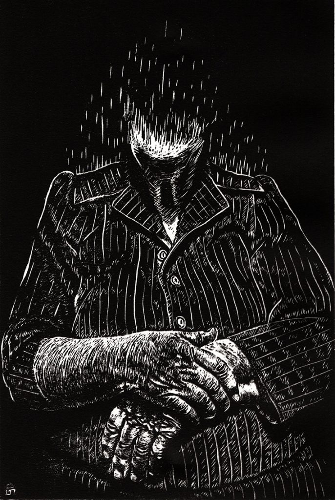 Non conosciamo il nome del narratore che si presenta all'inizio del racconto come dipendente di una multinazionale petrolifera e "urban schetker" per hobby. Il resoconto dell'incontro con un anziano pittore ha quasi l'andamento di un dialogo platonico ed è il pretesto per esternare le personali considerazioni anticonformiste sull'arte e sull'esistenza.