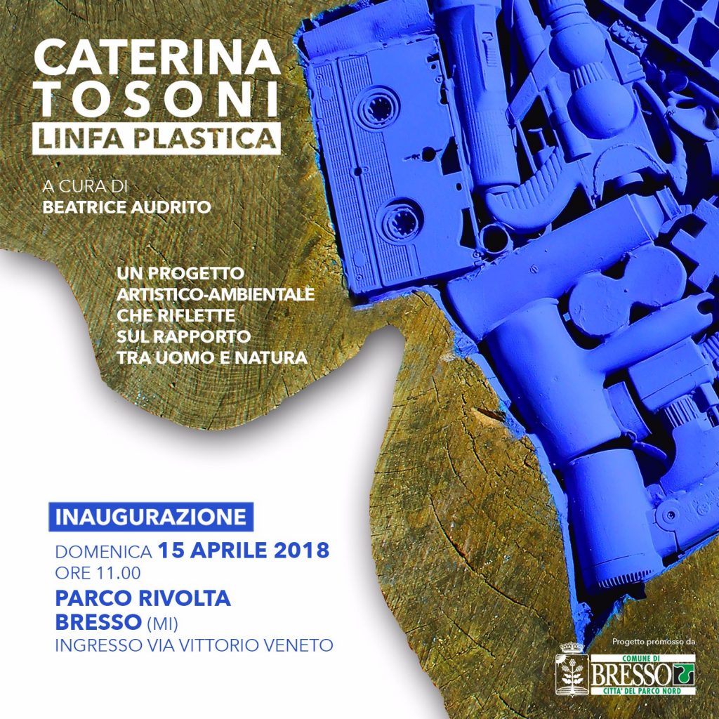 Caterina Tosoni è un'artista milanese che riflette da tempo sulle problematiche ambientali che derivano dal rapporto uomo-natura, utilizzando un materiale inusuale, la plastica, protagonista indiscussa della odierna società dei consumi. Per dare forma alla sua ricerca l'artista preleva, e dunque sottrae al proprio contesto, una serie di oggetti di plastica di uso comune per poi utilizzarli come elemento compositivo delle proprie opere: distribuendoli su una superficie bidimensionale oppure combinandoli tra loro per comporre sculture e installazioni, facendo interagire gli oggetti di plastica con elementi naturali come il legno o la pietra.
