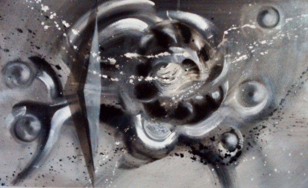 “L’infinito punto di Dio” è il punto di concentrazione vorticante tra intelligenza creativa, intelligenza intellettuale e intelligenza spirituale; il punto in cui il pensiero fugace obbedendo a un disegno invisibile, annullato nella stoltezza e corretto nell’ingegno, può inaugurare una forma segreta: chiave dell'iniziazione e della cosmologia. Rimando costante è a “Tutte le Cosmicomiche” di Italo Calvino, un gioco evocativo intrigante e raffinato nell’intento di unificare la generazione spontanea delle immagini all'intenzionalità del pensiero discorsivo.