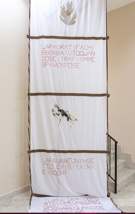 In anteprima in mostra sono esposte anche quattro opere tessili frutto di un'ulteriore collaborazione dell’artista con gli atenesi: l’azione di Amati ha infatti contribuito all’attivazione di un laboratorio permanente di cucito nel centro storico di Atena Lucana. Negli ultimi mesi un gruppo di donne del paese, con un ricamo a più mani, ha tradotto in un’opera tessile quattro pagine del quaderno di lavoro dell'artista prodotto durante la residenza del 2022.