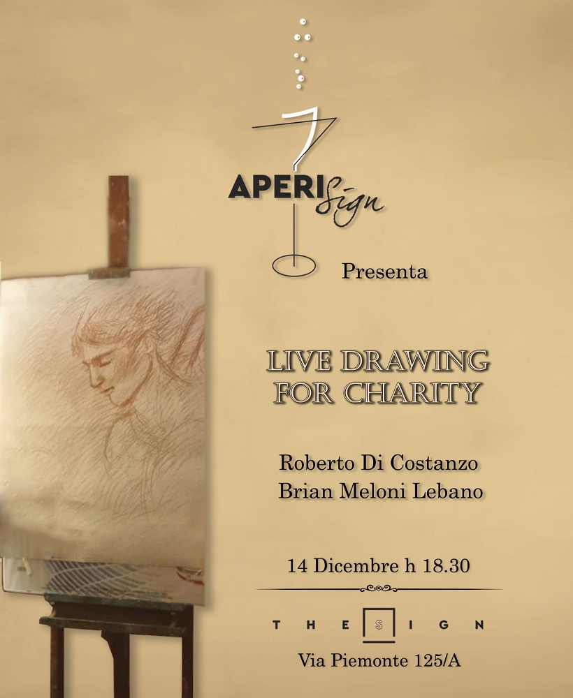 Nella splendida cornice del Thesign, eclettico show room di design e arte nel cuore del quartiere Ludovisi a Roma, avrà luogo un evento esclusivo nella serata del 14 dicembre dalle ore 18.30, che unirà il live drawing del Maestro Roberto Di Costanzo all’arpa del Maestro Brian Meloni Lebano per una nobile iniziativa benefica.