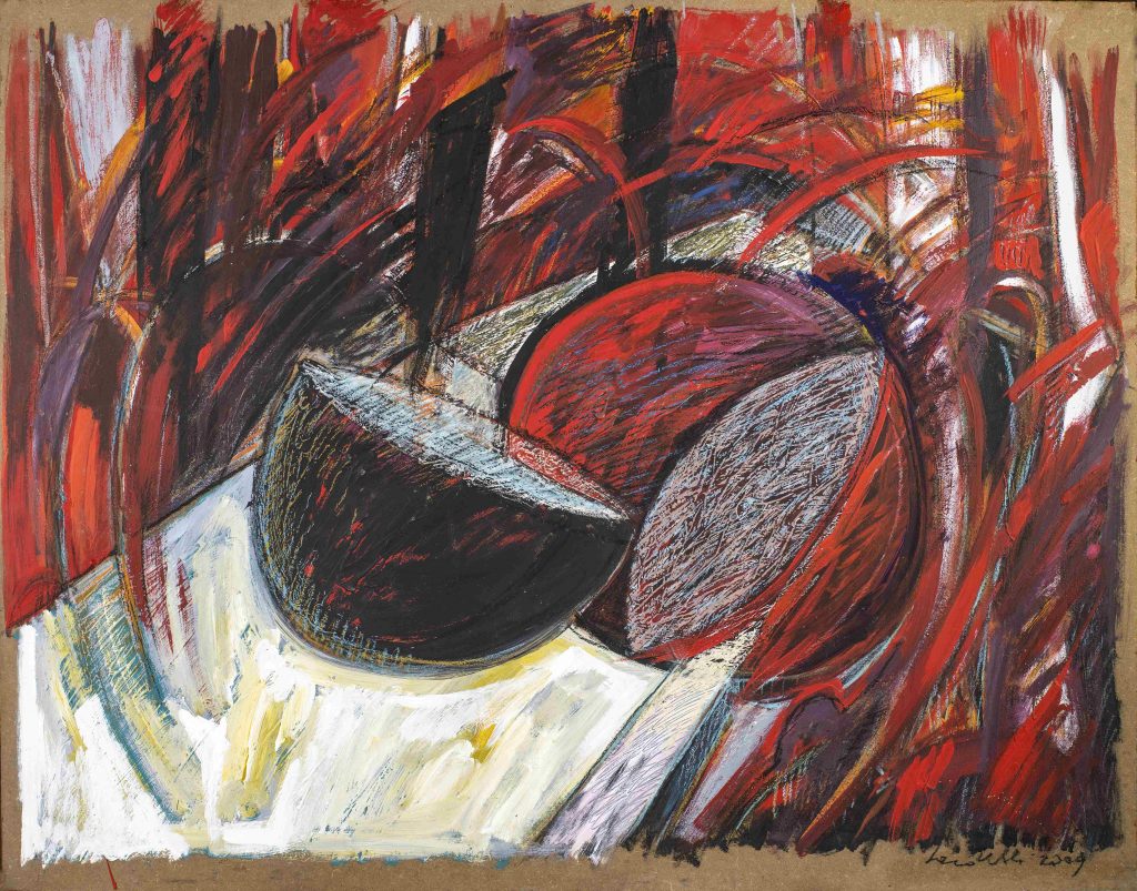 Vi si legge, talvolta più nitidamente per la più solida componente dinamica, come una prossimità, un’affinità, un’ideale adesione al Futurismo, forse mediata dai contatti con Sante Monachesi, all’accademia di belle arti di Roma, e dall’amicizia con altri protagonisti del movimento quali Mino delle Site, Enzo Benedetto, Gerardo Dottori. Un vincolo con l’avanguardia, il suo, stretto e ad ampio spettro, che in certe scomposizioni sembra rinviare anche al Cubismo, per quanto riletto, non di rado, alla luce di una viscerale gestualità di matrice informale. […]