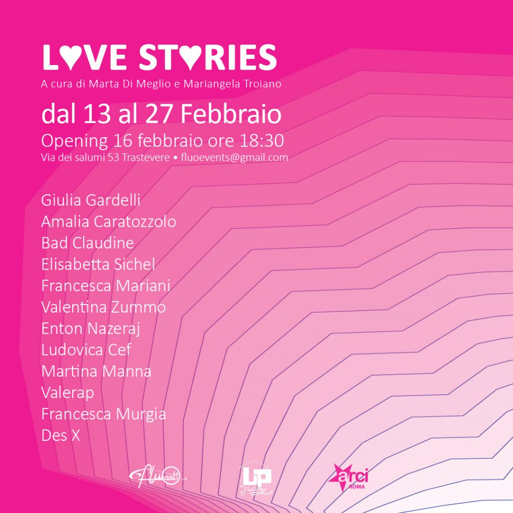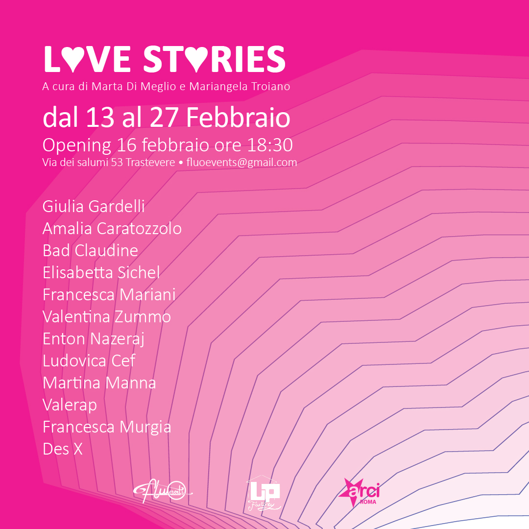 Up Urban Prospective Factory è lieta di presentare Love Stories, esposizione collettiva a cura di Marta Di Meglio e Mariangela Troiano. L’evento avrà luogo presso lo spazio espositivo di via dei Salumi 53 a Trastevere, venerdì 16 febbraio dalle ore 18:30.