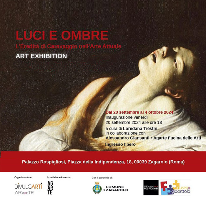 La rassegna “Luci e Ombre: L’Eredità di Caravaggio nell’Arte Attuale” si svolgerà all’interno dei locali del Palazzo Rospigliosi di Zagarolo, importante dimora storica del Lazio portando il patrocinio del Comune di Zagarolo. L’esposizione collettiva d’artisti contemporanei è organizzata da Divulgarti, curata da Loredana Trestin con l’assistenza di Maria Cristina Bianchi come assistente curatore, con la direzione organizzativa di Valentina Maggiolo ed in collaborazione con Alessandro Giansanti ed Agarte - Fucina delle Arti.