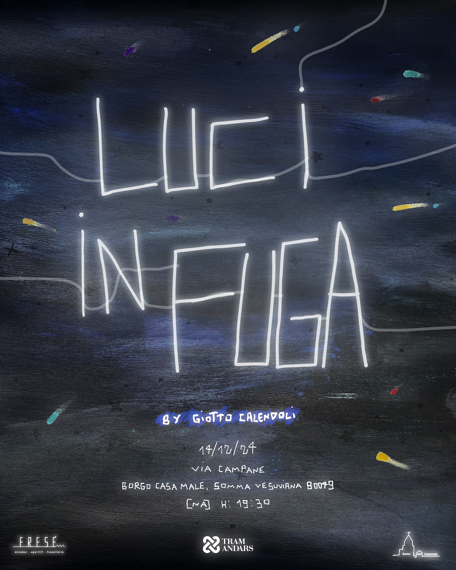 Il progetto “Luci in Fuga” nasce dal desiderio di valorizzare il borgo Casamale attraverso un dialogo tra la sua identità storica e le aspirazioni delle nuove generazioni. Le luminarie, elemento radicato nella nostra tradizione, diventano qui qualcosa di più: non solo decorazioni per le festività, ma un linguaggio che parla alle nuove e alle passate generazioni.