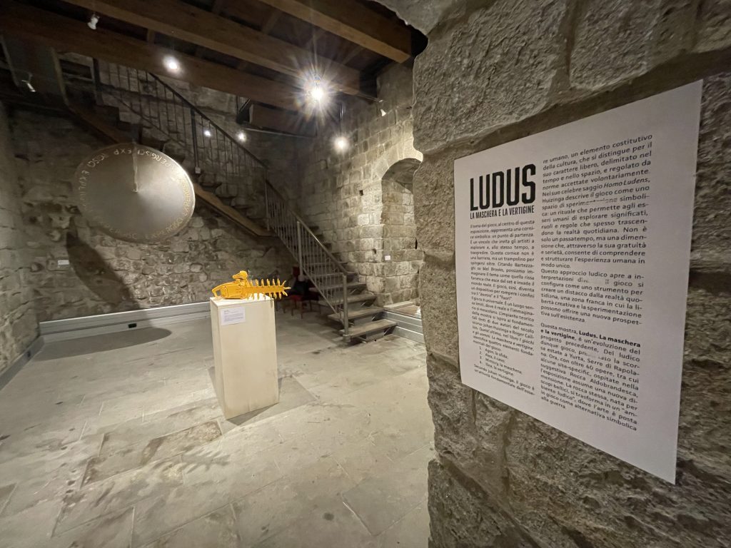 La mostra “Ludus - La maschera e la vertigine”, presso la Rocca Aldobrandesca di Piancastagnaio (6 dicembre 2024 - 30 aprile 2025), evolve da “Del ludico dunque gioco”. Con opere di 37 artisti, esplora il gioco ispirandosi ai testi di Roger Caillois e Johan Huizinga, in dialogo con l’architettura storica della Rocca Aldobrandesca.