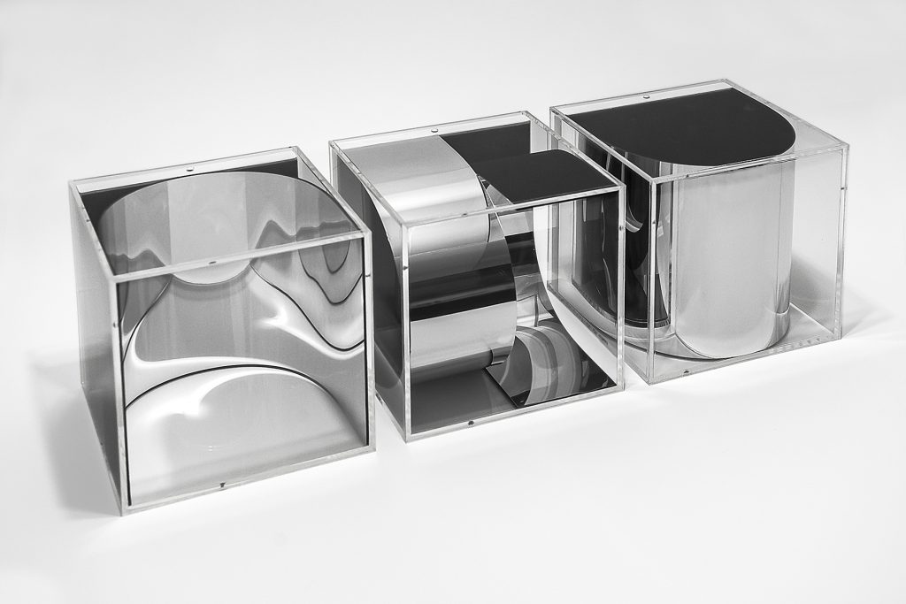 Lo scontro navale che ebbe luogo il 7 ottobre 1571 nelle acque di Lepanto, segnò una svolta epocale nella storia del Mar Mediterraneo e di tutti quei paesi che, fino ad allora, erano stati coinvolti nella lotta per arginare la minaccia turca. La battaglia, tema caro all’attività pittorica di Salvator Rosa, fu uno dei suoi soggetti preferiti fin dagli esordi. Coppeta percependo la volontà del maestro, di andare oltre la meraviglia visiva, sceglie di agire direttamente nella terza dimensione, deformando materiali specchianti e sottolineando il ruolo decisivo che le tensioni hanno in questo dialogo. Ad aiutarci in questo processo di decodifica di un linguaggio che ha avuto il suo exploit nel seicento napoletano, è la ricerca “Riflessi e Deformi” dell’artista Max Coppeta, opere che esplorano la proprietà dell’acqua e dei liquidi di ingrandire oggetti immersi in essa a causa della differenza dell’indice di rifrazione. Questa indagine è una metafora sulla percezione della realtà, spesso distorta dalla fame di sopraffazione. La luce che, ne La battaglia di Lepanto, trafigge i visi dei protagonisti dei due gruppi antagonisti è reinterpretata in chiave contemporanea dall’artista, che la assimila, per rifletterla nelle sue sculture. Come in una scenografia, chi osserva, viene avvolto e catturato dalla forza attrattiva che anima le opere di Rosa e Coppeta. Questa forza, sembra fuoriuscire dalle figure per propagarsi nei rimandi di una storia che scuote il presente e torna ad essere forma nuova.
