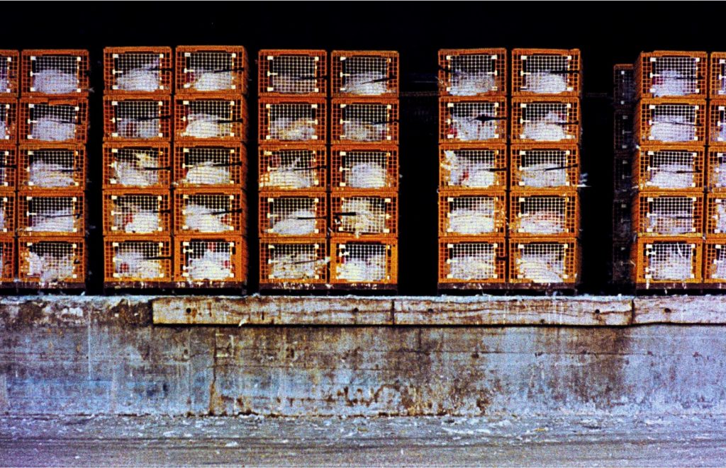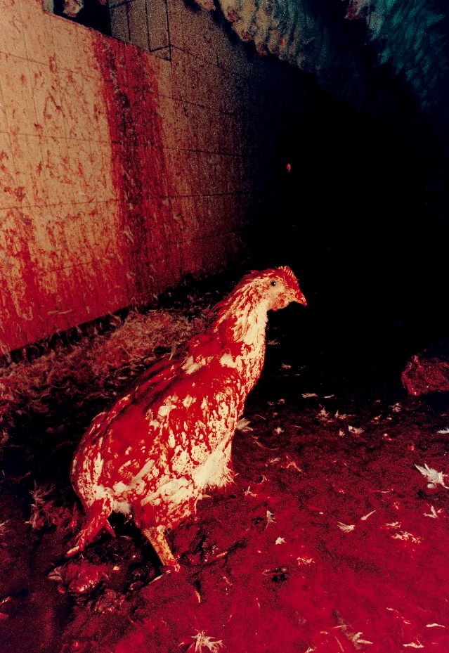 In questa mostra, curata da Simona Guerra, ci troviamo dentro a moderni mattatoi con immagini scattate da due diversi autori: Mario Giacomelli, che nel 1961 a Senigallia ha realizzato la sua serie Mattatoio, e Pino Dal Gal che nel 1976 in nord Italia ha realizzato Chicken story.