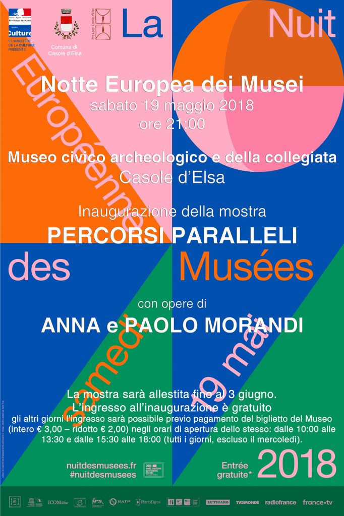 ü Notte Europea dei Musei. In occasione dell'importante manifestazione culturale, alle ore 21:00, nel Museo civico archeologico e della collegiata di Casole d'Elsa, ci sarà l'inaugurazione della mostra "Percorsi Paralleli" con le opere degli artisti casolesi Anna e Paolo Morandi. Anna è una pittrice che predilige dipingere le donne con un colore monocromatico, come monocromatico è il colore della pelle, ed ha un segno sicuro, perfetto. Le sue figure mostrano sentimenti forti come la tristezza accompagnata alla noia con una certa indifferenza mista a curiosità per un mondo esistenziale dove la realtà appare cruda, promiscua e, a volte, sconvolgente. In questa mostra l'artista propone alcuni suoi studi di donna realizzati ad olio su un supporto in ferro che, con il suo colore, si fonde con l'immagine dipinta. Paolo è uno scultore poliedrico e completo che plasma qualsiasi tipo di materia, consapevole che nella scultura ciò che conta è l'occupazione armonica dello spazio. La sua è una spasmodica scoperta, mai scontata, del respiro della vita contenuta nella materia. Per la Notte Europea dei Musei esporrà una selezione di opere in vari materiali: dal travertino alla creta, dall'alabastro al ferro. Anna e Paolo hanno accettato la sfida di creare un dialogo tra le opere d'arte antica e moderna esposte nelle sale della sezione storico-artistica del Museo e le proprie; un dialogo senza tempo nella manifestazione di un'espressione intima, come la fede, o di una quotidianità rivelata. La mostra sarà allestita fino al 3 giugno. L'ingresso all'inaugurazione di sabato 19 maggio, alle ore 21:00, è gratuito; gli altri giorni l'ingresso sarà possibile previo pagamento del biglietto del Museo (intero €3,00 - ridotto € 2,00) negli orari di apertura dello stesso: dalle 10:00 alle 13:30 e dalle 15:30 alle 18:00 (tutti i giorni ad esclusione del mercoledì). Per informazioni: Museo Civico Archeologico e della Collegiata e Ufficio Turistico, Tel. 0577/948705, e-mail: museo@casole.it; uff_turistico@casole.it.