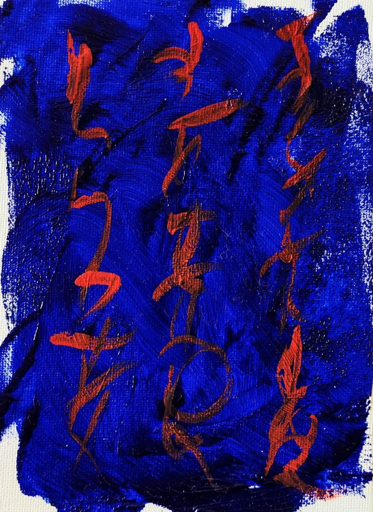 mai successo prima si compone dei più recenti lavori dell’artista relativi la pratica dell’asemic writing, i primi del genere olio/acquerello su tela, carta, cartoncino, carta bambù, agenda, quotidiani, libro, sacco in polipropilene. Una ricerca sul segno, sulla dirompenza del colore, sull’incisività del gesto.