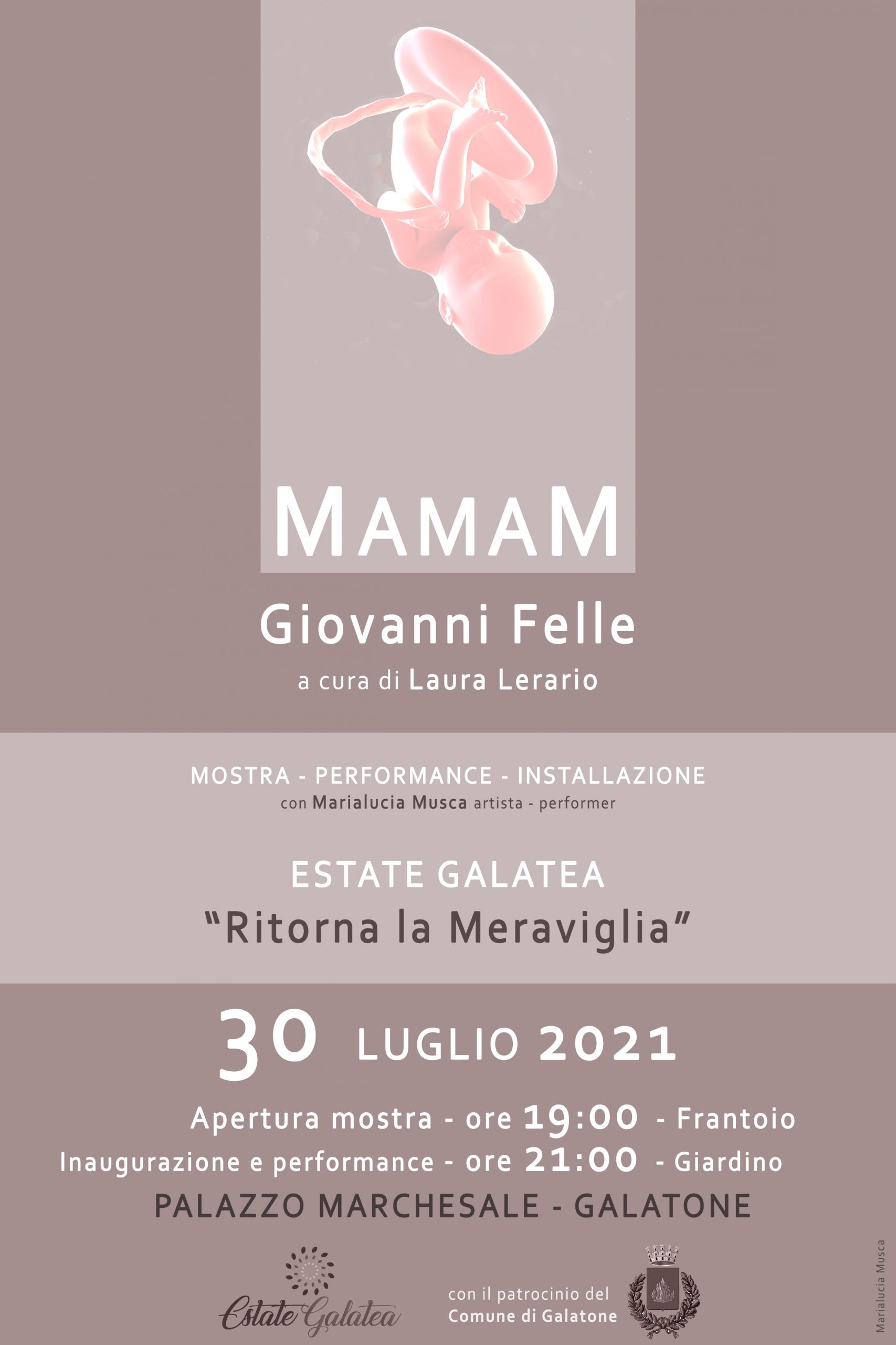 Venerdì 30 luglio 2021, a Galatone, presso la sede del Frantoio Semi- Ipogeo e il giardino adiacente al Palazzo Marchesale, si apre MAMAM di Giovanni Felle, a cura di Laura Lerario.