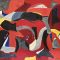 grandi dimensioni, astratte, dinamiche e colorate; composizioni dove l’artista esprime la gioia di