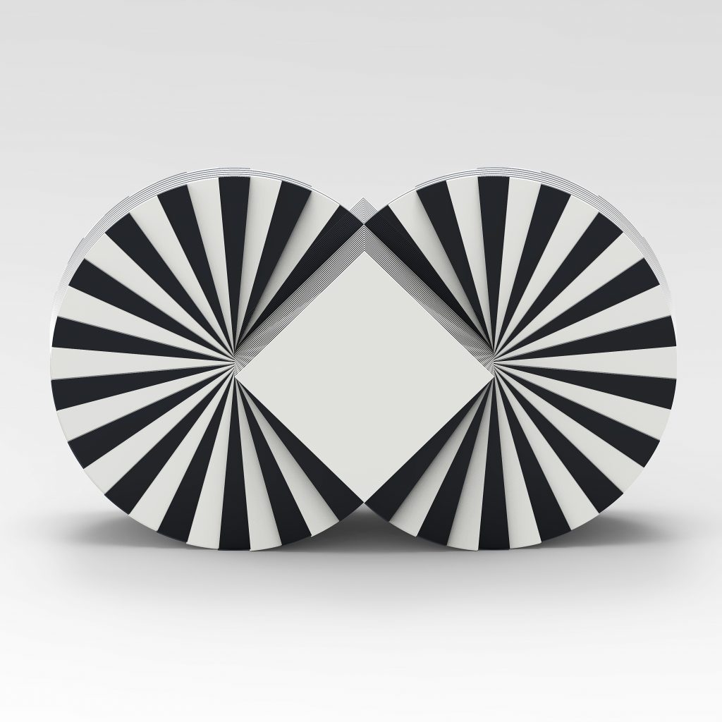 Superando i limiti della settorialità delle discipline con naturalezza e creatività, Morandini affida lo sviluppo di ogni opera alla certezza della matematica, all’equilibrio di rapporti formali scientificamente controllabili. Forme geometriche elementari compongono il suo vocabolario artistico per creare combinazioni e trasformazioni determinate dal movimento nello spazio, enfatizzate dall’alternanza del bianco e del nero.