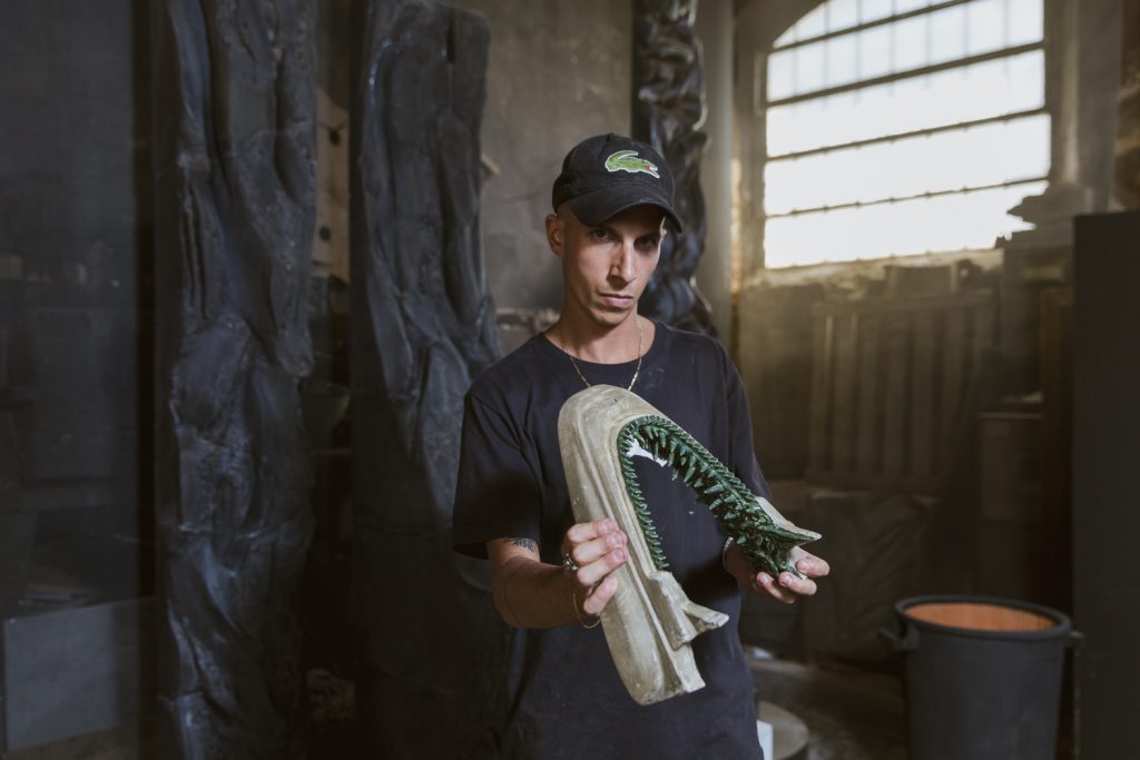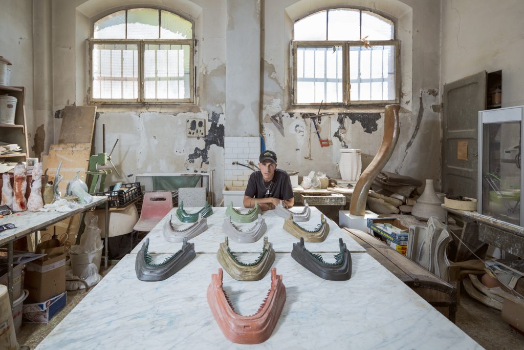 All'interno della Sala dei forni SLAG dialogherà con l'opera LACOSTE, una grande scultura in ceramica, che emulsiona scenari urbani ad immaginari primordiali e selvaggi.