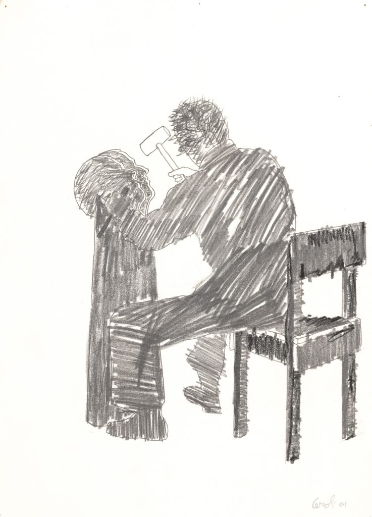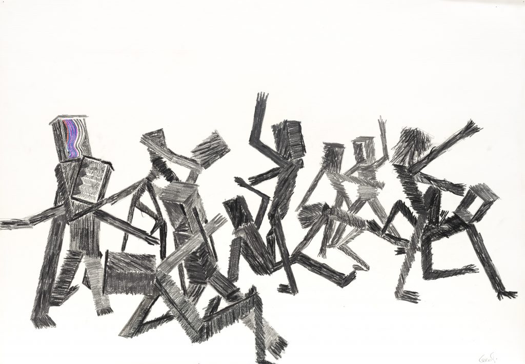 L’esposizione ruota intorno ai disegni su carta dedicati al celebre romanzo di fantasia Le avventure di Pinocchio di Carlo Collodi. Si tratta di opere raffinate, in cui l’artista usa la matita e il collage, con inserti di grafite e carboncino, che gli consentono di esprimere quel mondo metaforico sospeso tra simbolo, realtà e immaginazione.