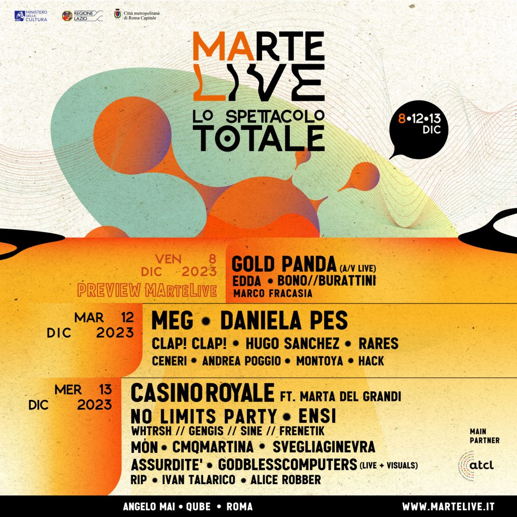 Il 12 e 13 dicembre torna a Roma MArteLive - lo spettacolo totale: nelle sale del Qube (via di Portonaccio 212) la grande kermesse con una line up in costante aggiornamento con più di 30 ospiti nazionali e internazionali, oltre 300 artisti emergenti (selezionati nelle 5 regioni del centro Italia) che si sfideranno nelle 16 sezioni artistiche simultaneamente attive tra musica, teatro, danza, circo contemporaneo, pittura, fotografia, artigianato artistico, graficart, live painting e street-art, proiezioni, installazioni, reading e video-arte.