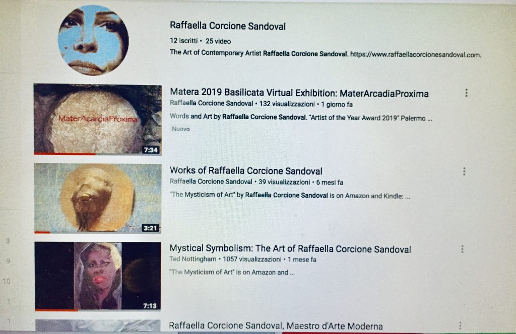 Impegnata dal 2016 con il progetto MATERARCADIAPROXIMA ideato esclusivamente per Matera, e determinata a far conoscere le sue opere oltre la Cortina del Sistema dell’Arte, pubblica sul suo canale Youtube la sua Mostra Virtuale, per il pubblico incontaminato del WEB.