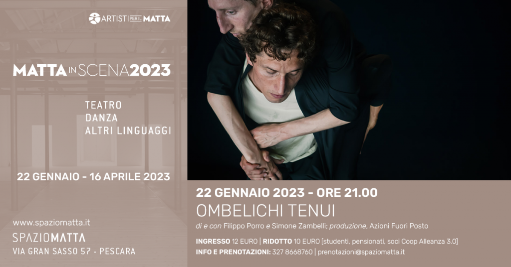 Lo Spazio Matta apre il 2023 con una programmazione intensa di spettacolo dal vivo dal 22 Gennaio fino al 16 Aprile con spettacoli, workshop e incontri.