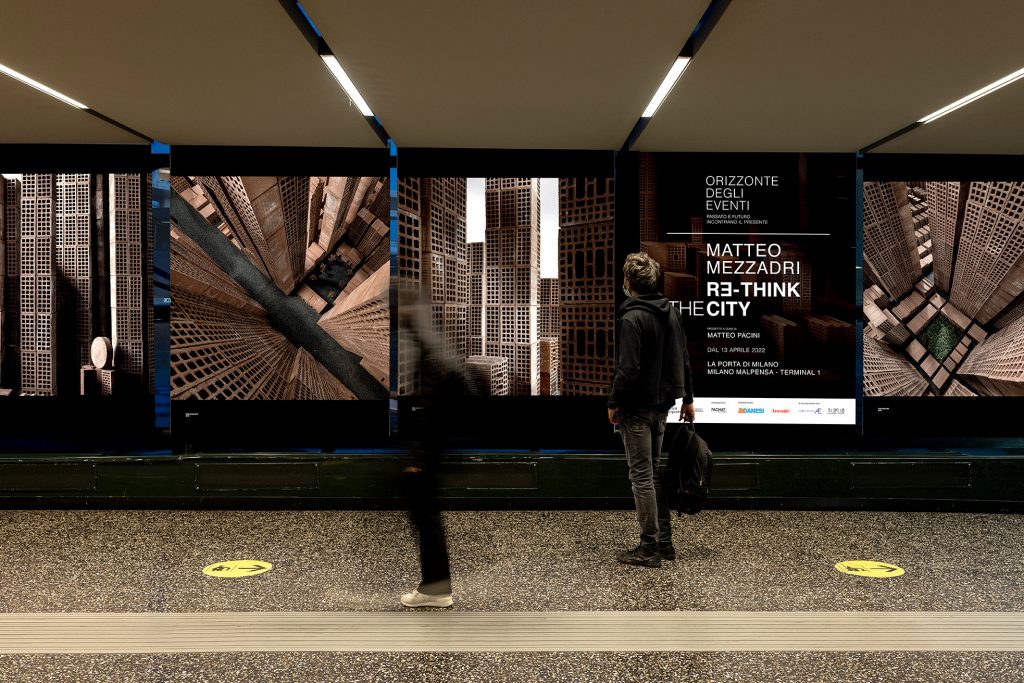 Una porta sul mondo che suggerisce nuove visioni del rapporto tra l’essere umano e la città. Questa l’idea alla base di RETHINK THE CITY, imponente installazione site-specific realizzata dall’artista parmense Matteo Mezzadri, che campeggia dal 13 aprile per tutta la stagione estiva e fino al 31 ottobre presso la “Soglia Magica”, la Porta di Milano al Terminal 1 dell’Aeroporto di Milano Malpensa.