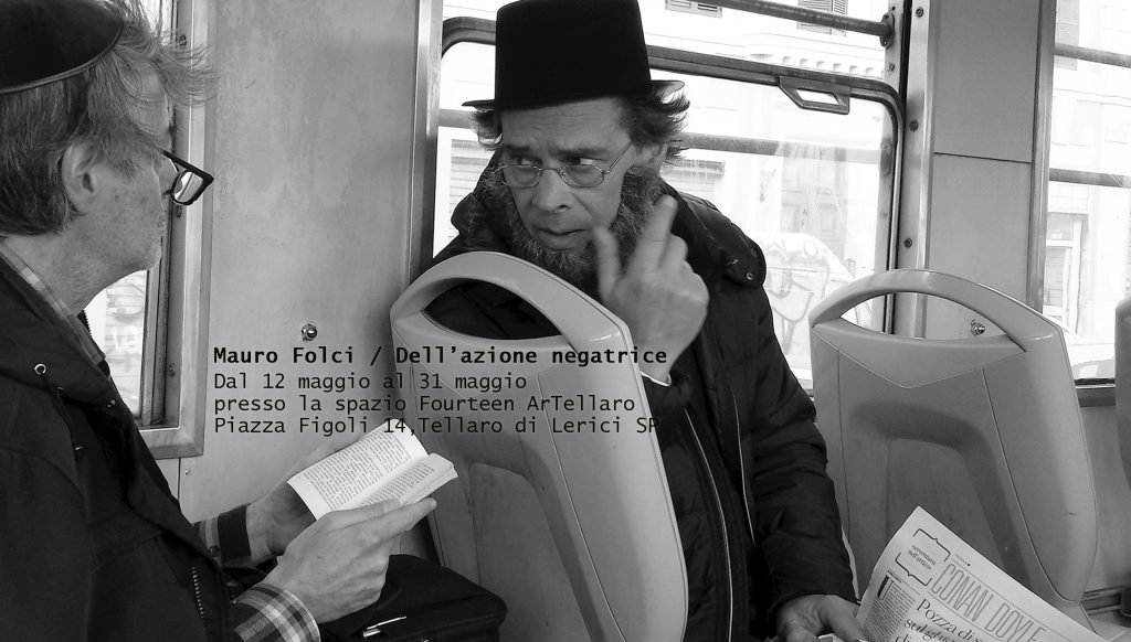 Qui, nello spazio Fourteen ArTellaro la doppia negazione viene messa in relazione e dentro un contesto di ricerca, avviato da un paio di anni da Folci, che è la fine dell’Azione negatrice, espressione più efficace e con maggiori articolazioni dell’abusata fine della storia.