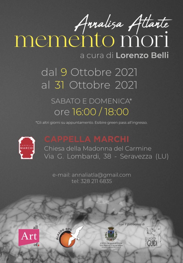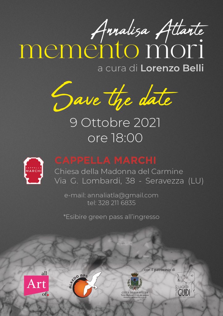 "Memento mori”, la mostra personale di Annalisa Atlante a cura di Lorenzo Belli, espone le più recenti rappresentazioni dell’artista concepite e collocate appositamente per lo spazio che segnano l’apice della sua ricerca sugli aspetti del rapporto con la legge della natura.