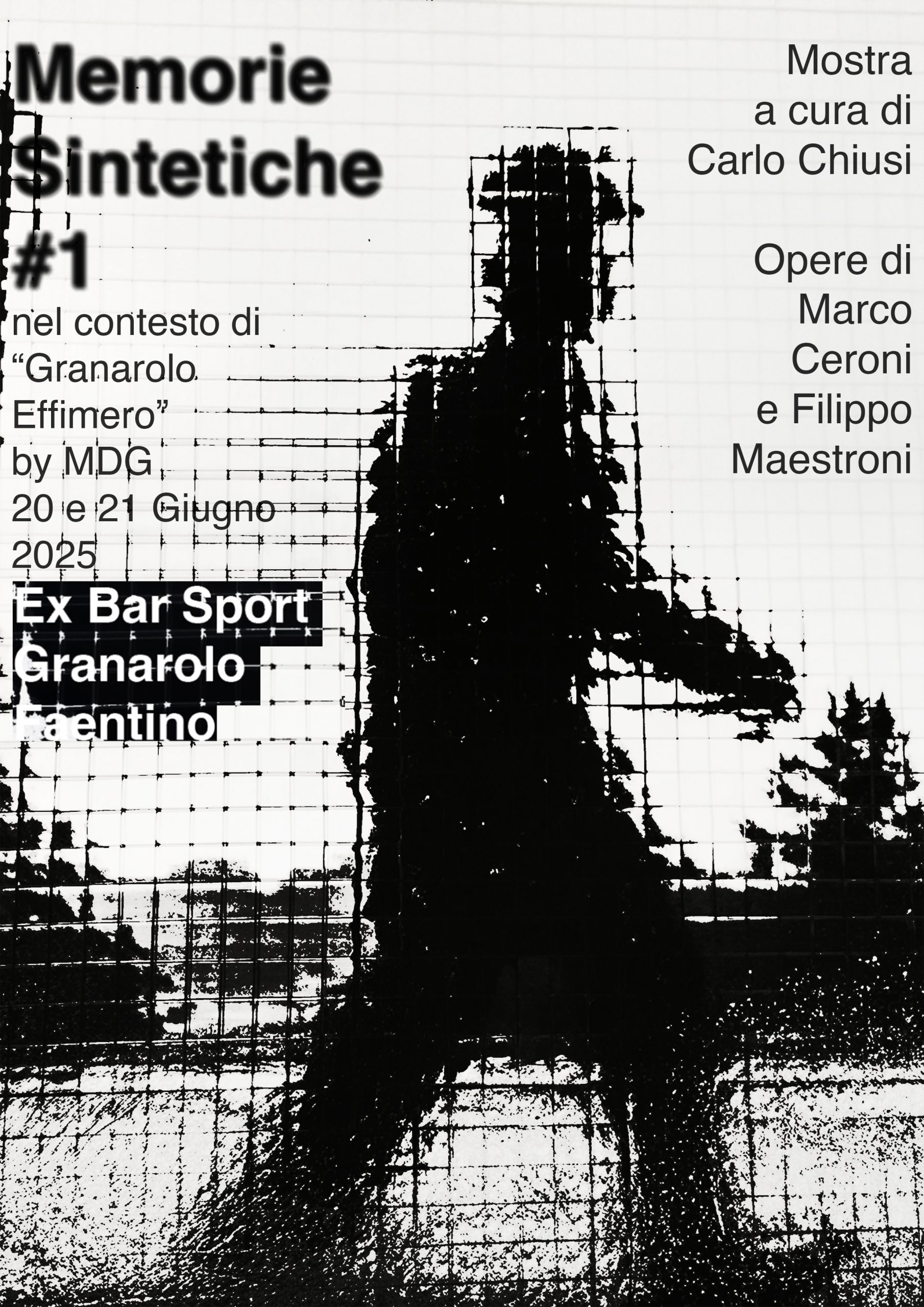 All’interno dell’ anteprima di "Arena delle balle di paglia” , “Granarolo Effimero”, festival di arte contemporanea alla sua prima edizione, organizzato dal Museo Diffuso di Granarolo Faentino viene presentata la mostra " Memorie Sintetiche"/ Lost in Backrooms.