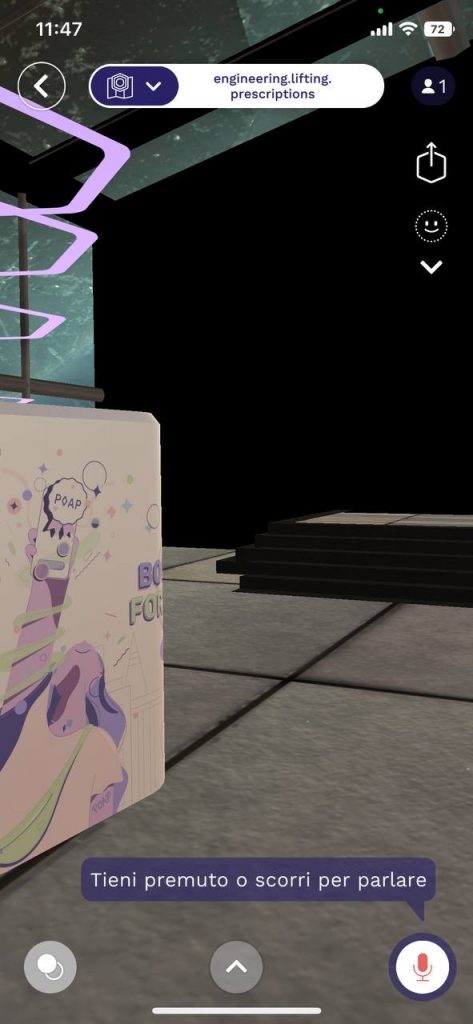 All’interno della galleria virtuale del progetto, saranno presenti degli NFT che certificano la presenza all’evento, chiamati POAP: lo scopo di tali badge è essere raccolti dai visitatori ad ognuna delle quattro discussioni di tesi nel Metaverso. La collezione di tutti gli NFT darà la possibilità di avere un premio relativo al progetto stesso.