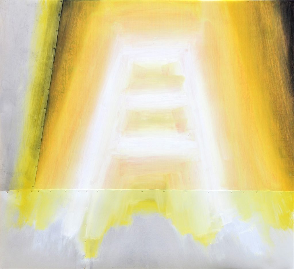 Sono in mostra una quindicina di lavori tra cui “Nei mondi” che dà il titolo, risultati della pluriennale ricerca sull’energia e la luce, ispirati, come già alcune sue poesie, alle riflessioni sullo spazio cosmico e il mistero dell’infinito. Grandi dipinti ad acrilico su tela libera (senza telaio) come arazzi che formano una singolare unica installazione. Inoltre assemblaggi polimaterici, opere a olio su metallo e legno, la scultura Varo, poesie visive su carta e libri d’artista inediti in cui Michele De Luca come poeta visivo coniuga immagini e versi, disegni e progetti a frasi, nuclei di poesie e testi in divenire.