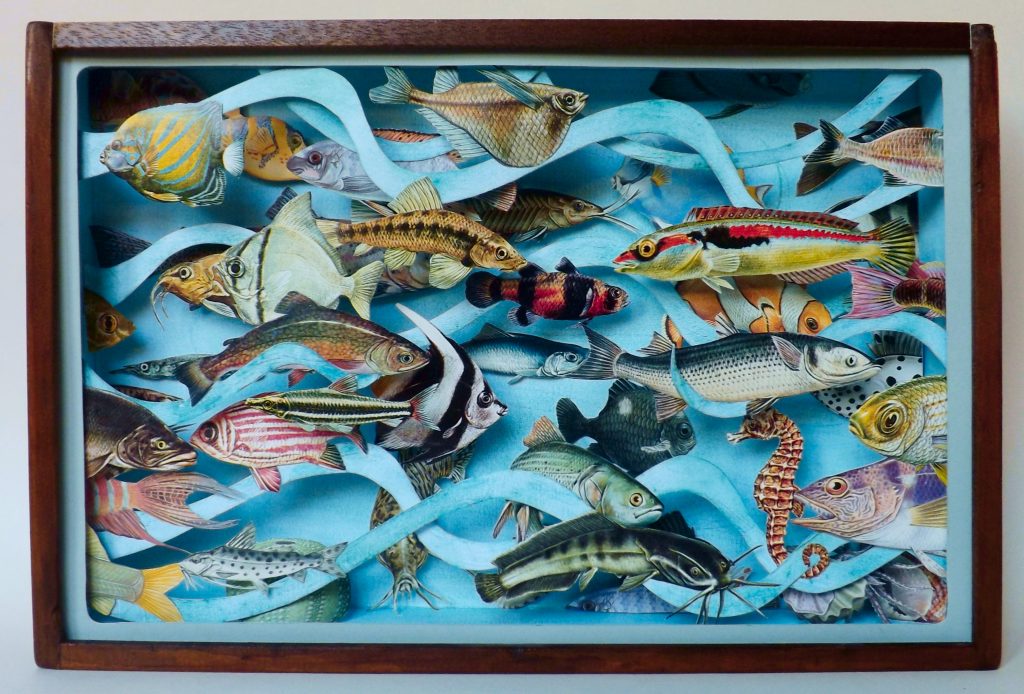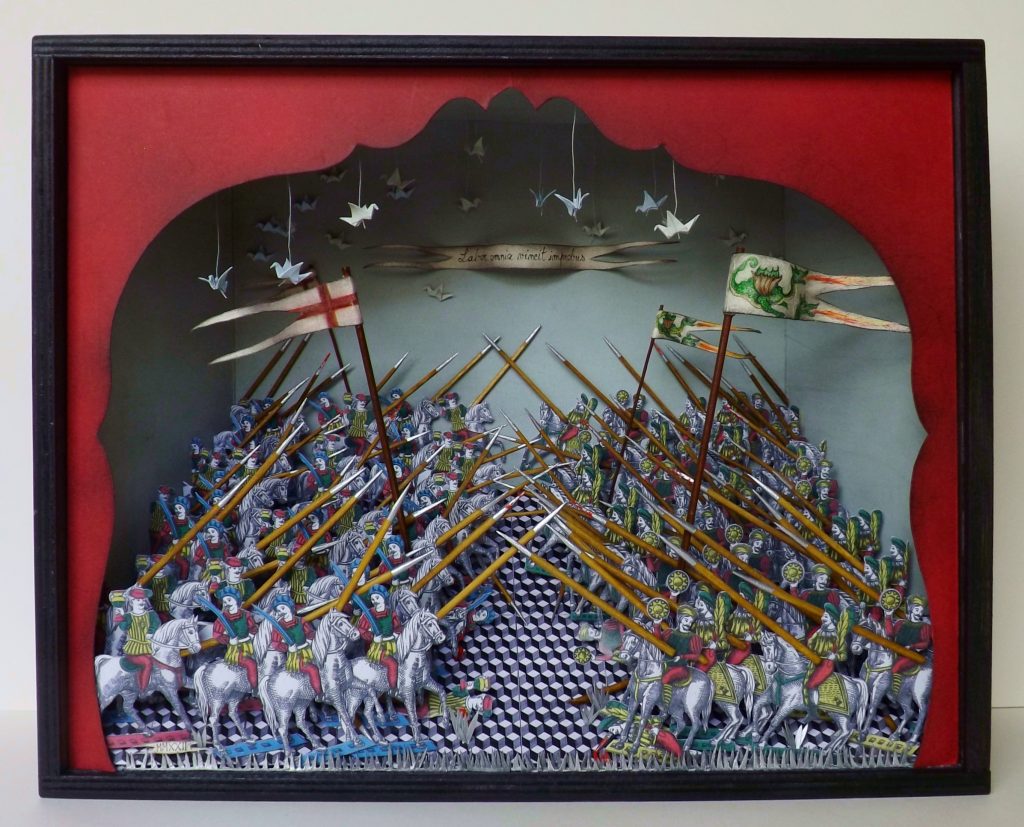 I micromondi fiabeschi di Simona Cozzupoli trasformano la chiesetta medievale di San Protaso al Lorenteggio in una Wunderkammer contemporanea, dove meravigliarsi osservando tutti i minuti particolari dei diorami esposti. Piccole teche di legno, o cornici dotate di una certa profondità, contengono mondi onirici tridimensionali i cui protagonisti sono le figure delle carte da gioco ritagliate e ricontestualizzate in giardini fiabeschi, illustrazioni di farfalle infilzate da veri spilli e catalogate secondo la vera nomenclatura scientifica, pesci di carta che riproducono la varietà caleidoscopica della fauna marina e oggetti vari che compongono "nature morte contemplative" monocrome oppure "rebus oggettuali" che coinvolgono lo spettatore in un gioco ermeneutico.