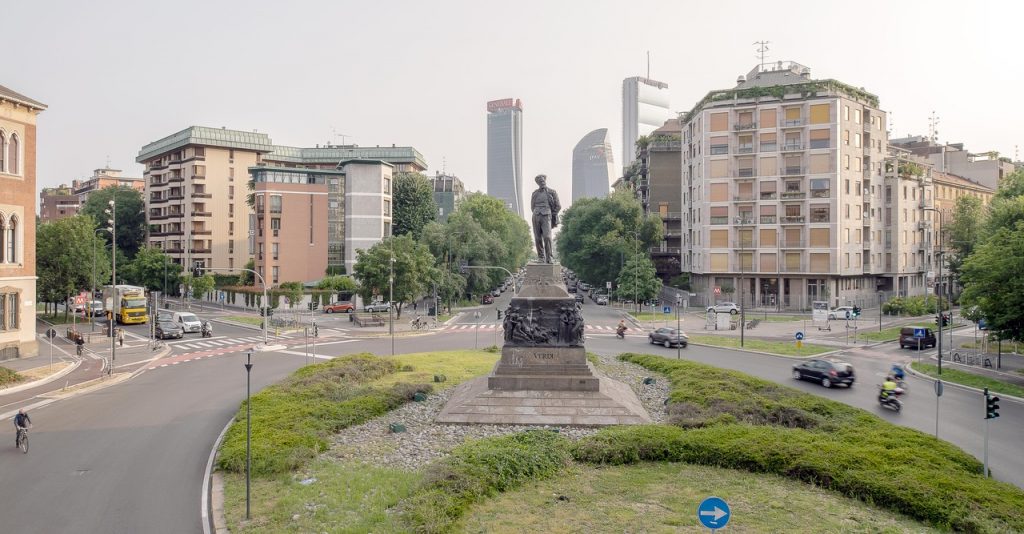 Milano è una di quelle città che da sempre si muove verso il futuro senza tuttavia nascondere o dimenticare né il presente né il passato: per un verso continua ad amare le architetture volute da un’antica borghesia ricca (anche culturalmente) ma poco incline mettersi eccessivamente in mostra, dall’altra non disdegna di competere con le altre grandi metropoli europee con progetti audaci che ne caratterizzano lo spirito contemporaneo. Antonella Bozzini ha deciso di dar vita a un progetto ambizioso, quello di seguire da adesso al 2030 l’evoluzione dell’architettura del paesaggio urbano. Partendo dalla struttura a cerchi concentrici che la caratterizza Milano, la fotografa parte dagli scorci delle antiche Porte per proseguire in modo prospettico lungo gli assi principali che collegano il centro alla città allargata con immagini dove emerge l’attenzione per il verde pubblico e per il suo uso sociale inducendo a interrogarsi sul rapporto fra le differenti architetture e le diverse visioni storiche, sociali e culturali. Il suo è uno stile essenziale, pulito e rigoroso che si caratterizza per l’attenzione rivolta non solo agli edifici ma anche allo spazio che li contiene e che contemporaneamente ne è caratterizzato. Ne risulta un dialogo fra architetture ma anche fra visioni del mondo diverse ma non conflittuali perché inserite in un contesto che, per proiettarsi verso il futuro, deve fare i conti con la storia.