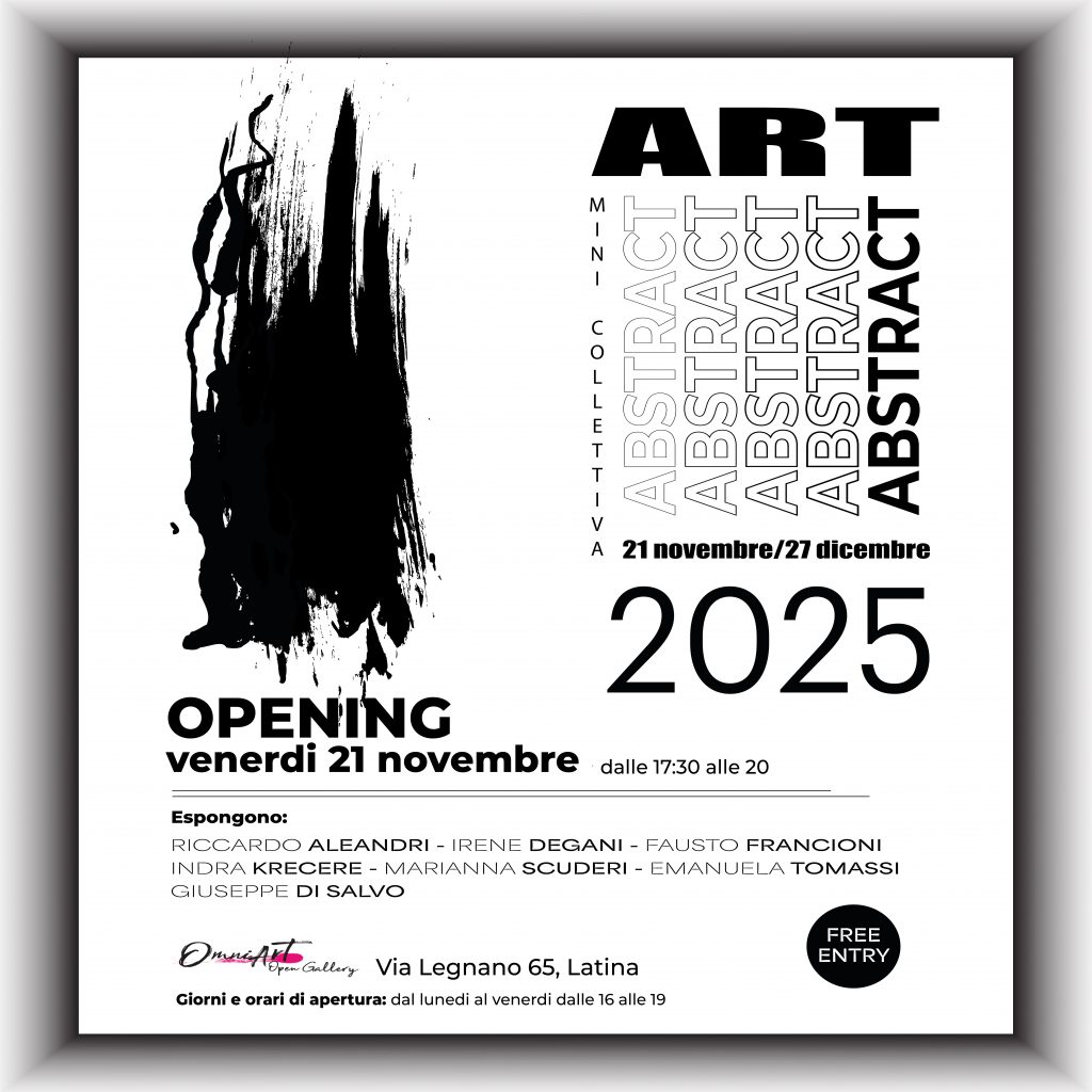 ABSTRACT ART è una mini collettiva dedicata alle più recenti declinazioni dell’astrazione contemporanea, inserita nella collettiva in corso “Forme Visione Contemporanee”. Il progetto approfondisce e amplia il percorso espositivo principale, offrendo una prospettiva fresca sulle nuove tendenze dell’arte astratta.