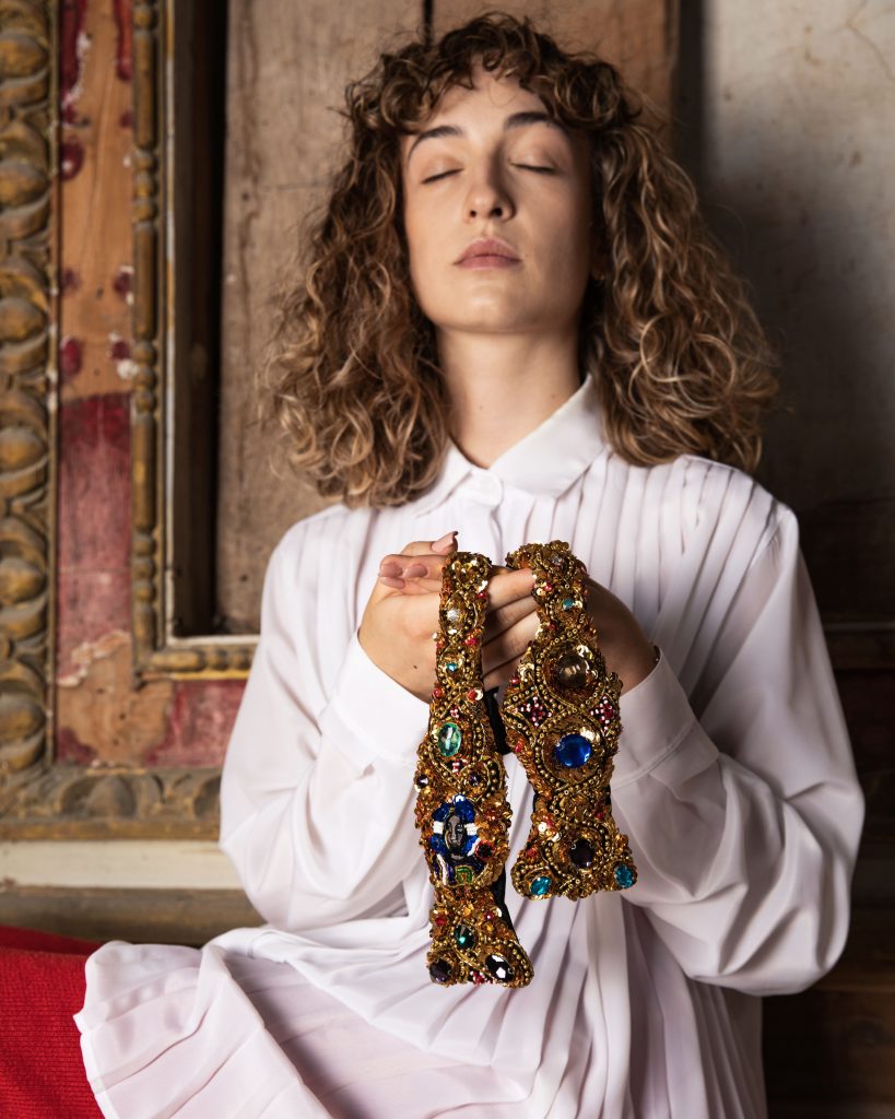 Rimandi ai più sublimi tesori dell’Arte Sacra, omaggio all’artigianalità orafa italiana e voglia di stupire attraverso accessori-gioiello avulsi da schemi di stile e di genere.
