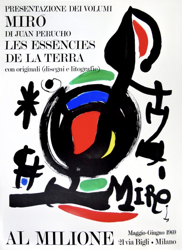 Maestro indiscusso del surrealismo, Miró ha sin da subito espresso il suo biasimo nei confronti della pittura convenzionale. Per lui il mondo reale, ciò che ci circonda è solo la realtà. La realtà per Miró è un punto di partenza, mai di arrivo. Le opere di Miró nascono dallo stretto legame tra le tinte forti del giallo giallo, nero, rosso o blu e il suo segno sintetico che insieme rileggono la realtà circostante sottraendole tutto ciò che non è essenziale.