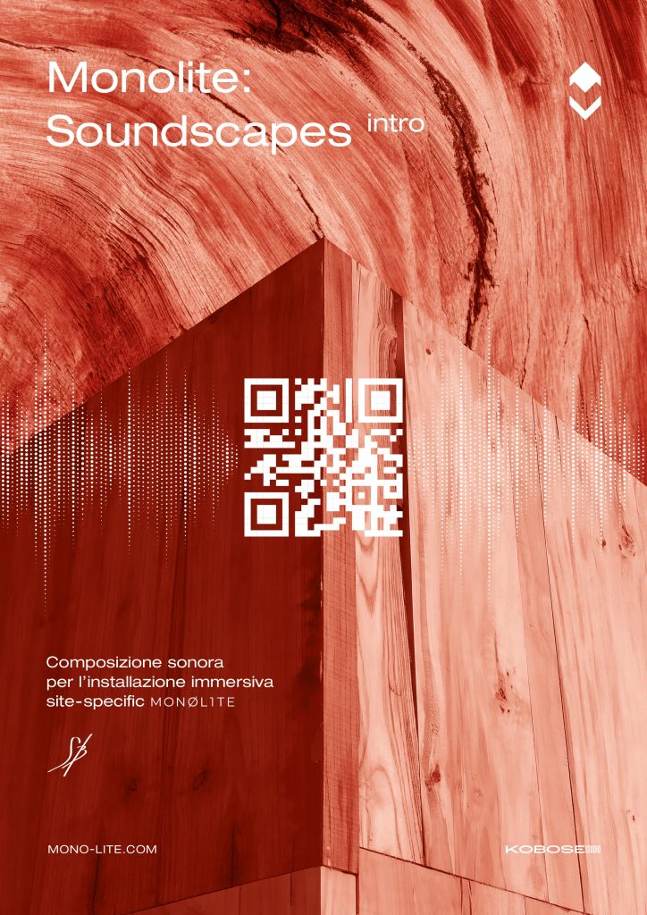 A completarne la visione un'esperienza meditativa, Monolite: Soundscapes. Una colonna sonora in cui i suoni della natura vengono trasformati in paesaggi onirici in continua evoluzione, creando un dialogo intimo con l'opera scultorea, ampliandone i significati e le suggestioni. Ogni ascolto è un’esperienza personale e irripetibile, come un’impronta digitale sonora. Un invito a riflettere sul nostro rapporto con l’ambiente.