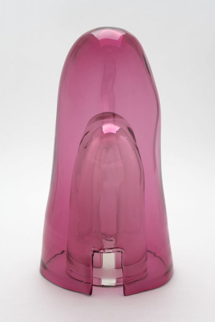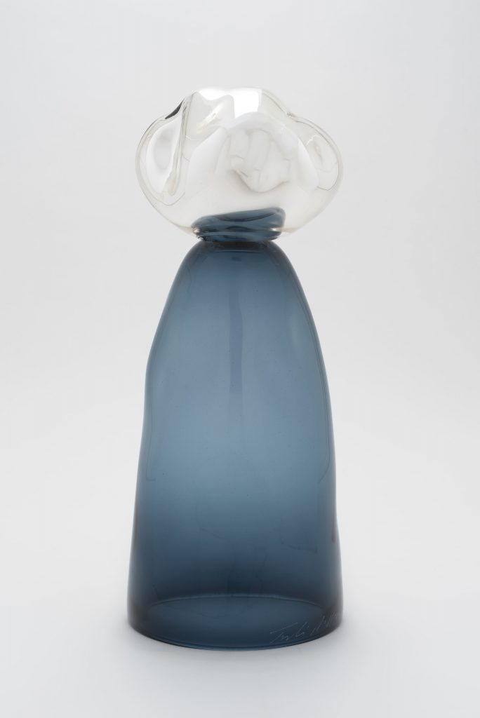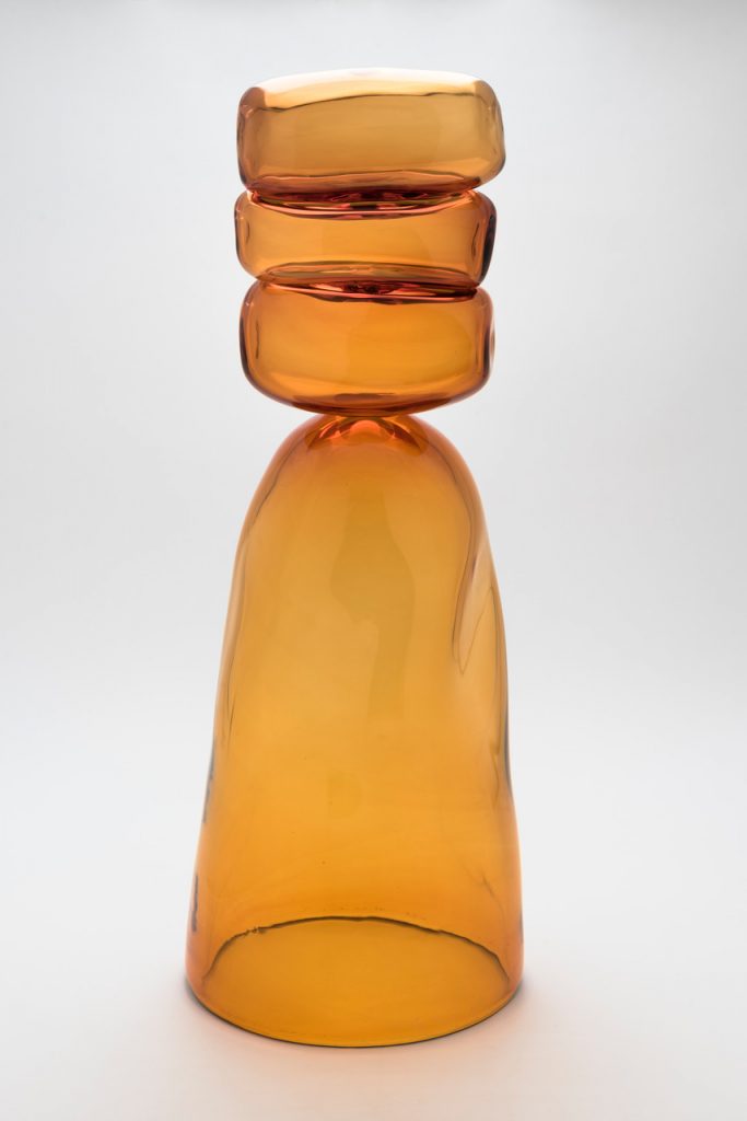 Le sculture realizzate in collaborazione con il maestro vetraio Andrea Zilio presso la fornace l’Anfora a Murano, sono il risultato del sodalizio tra l’artista e il maestro vetraio, che prosegue dal 2005. Le sue opere grazie alla trasparenza del vetro, mettono in un sapiente equilibrio, forme luce e colore, rimandando ad arcaismi, se pur fortemente contemporanei. Forme prive di irregolarità, esaltate dai colori e dalla trasparenza della materia, prendono nome da un vasto archivio di influenze letterarie, filosofiche e storiche. Ad accompagnare i vetri, saranno esposti una serie di monotipi realizzati a Verona con la collaborazione della stamperia d’arte Belardinelli. I monotipi, che in alcuni casi sembrano studi delle sculture e in altri evocazioni di paesaggi immaginari, sono realizzati con colori ad olio su carta. L’immagine viene inizialmente dipinta e lavorata su una lastra in plexiglas. Dopodiché la lastra viene passata attraverso il torchio e pressata su un foglio di carta. I lavori non sono un’edizione, sono lavori unici per questo il nome: monotipi. Anche in queste opere si avverte la suggestione della trasparenza e della fluidità del vetro.