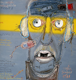 Saranno proprio gli autoritratti moreniani, databili dal 1985 al 1988, che apriranno l’esposizione e daranno simbolicamente il benvenuto a diciassette dipinti di Afro, gentilmente concessi dalla Fondazione Afro, che costituiscono una esemplificazione della produzione dell’artista dagli anni trenta agli anni settanta. Si parte infatti da un “Paesaggio con rovine” del ‘35 e da un autoritratto a matita del ‘45, per passare poi alle opere degli cinquanta e sessanta, in cui prevale il linguaggio informale, fino ad arrivare ad uno splendido arazzo, “Ponte dei pugni”, del 1975, realizzato un anno prima della morte dell’artista.