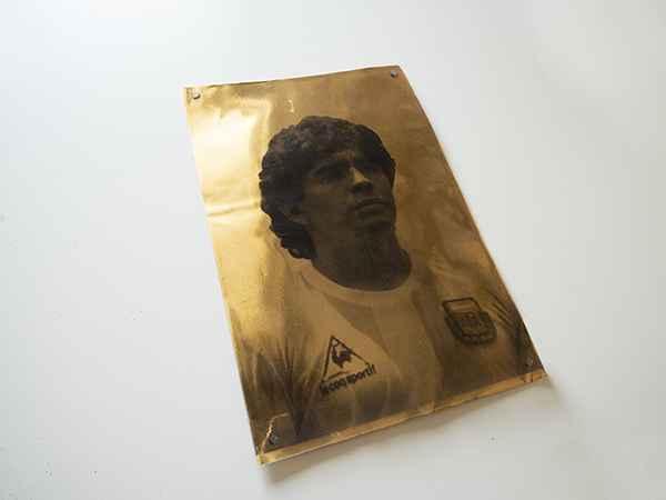 L'artista ha utilizzato l’oro per dar vita ad una serie di riferimenti: il primo riferimento è quello al famoso epiteto usato per designare il grande calciatore argentino “El Pibe de oro”, in riferimento al suo straordinario talento.